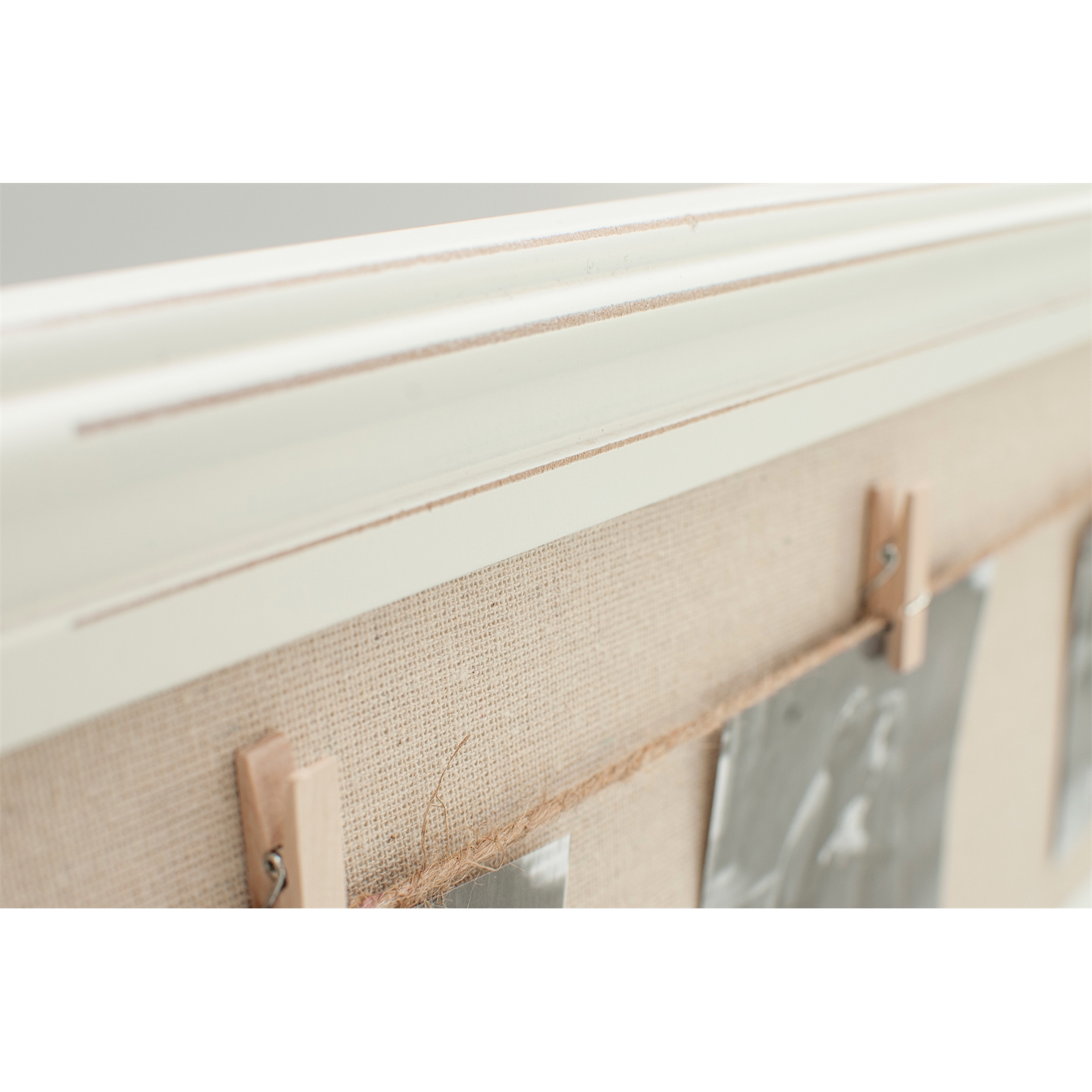 Dekorativer Bilderrahmen im angesagten Shabby Look. Dank der Leine und der kleinen Klammern... mehr