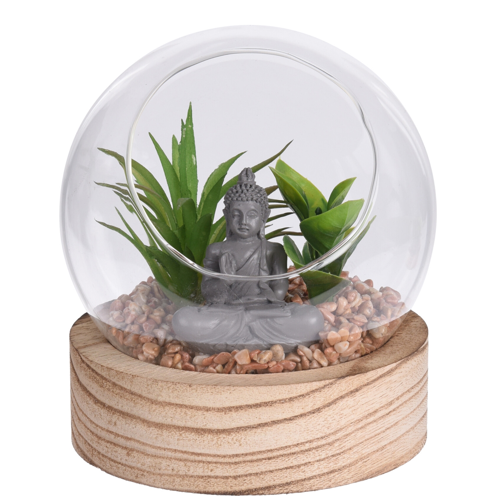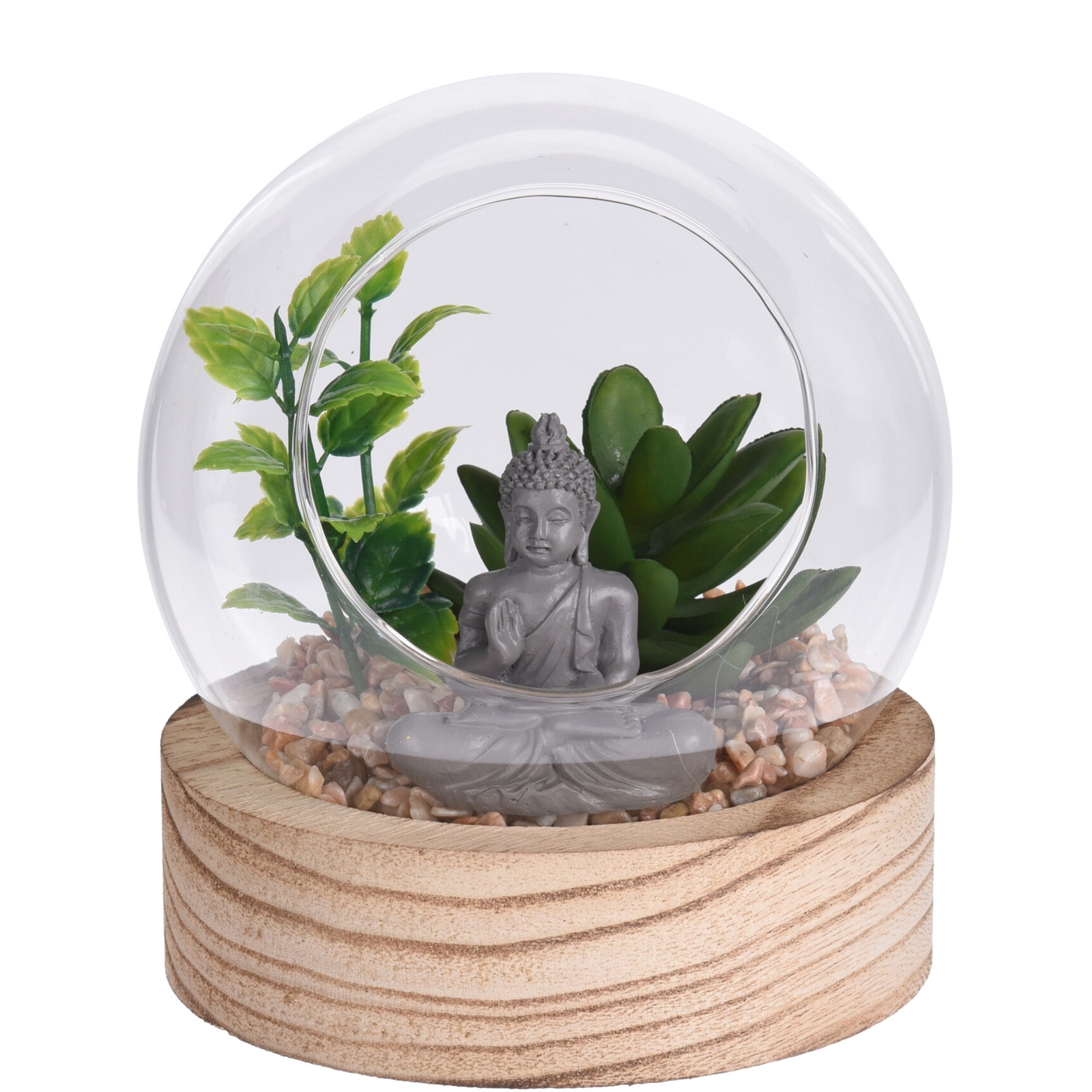 Produktinformationen "DEKO PFLANZE IN GLASKUGEL MIT STEINEN UND BUDDHA"