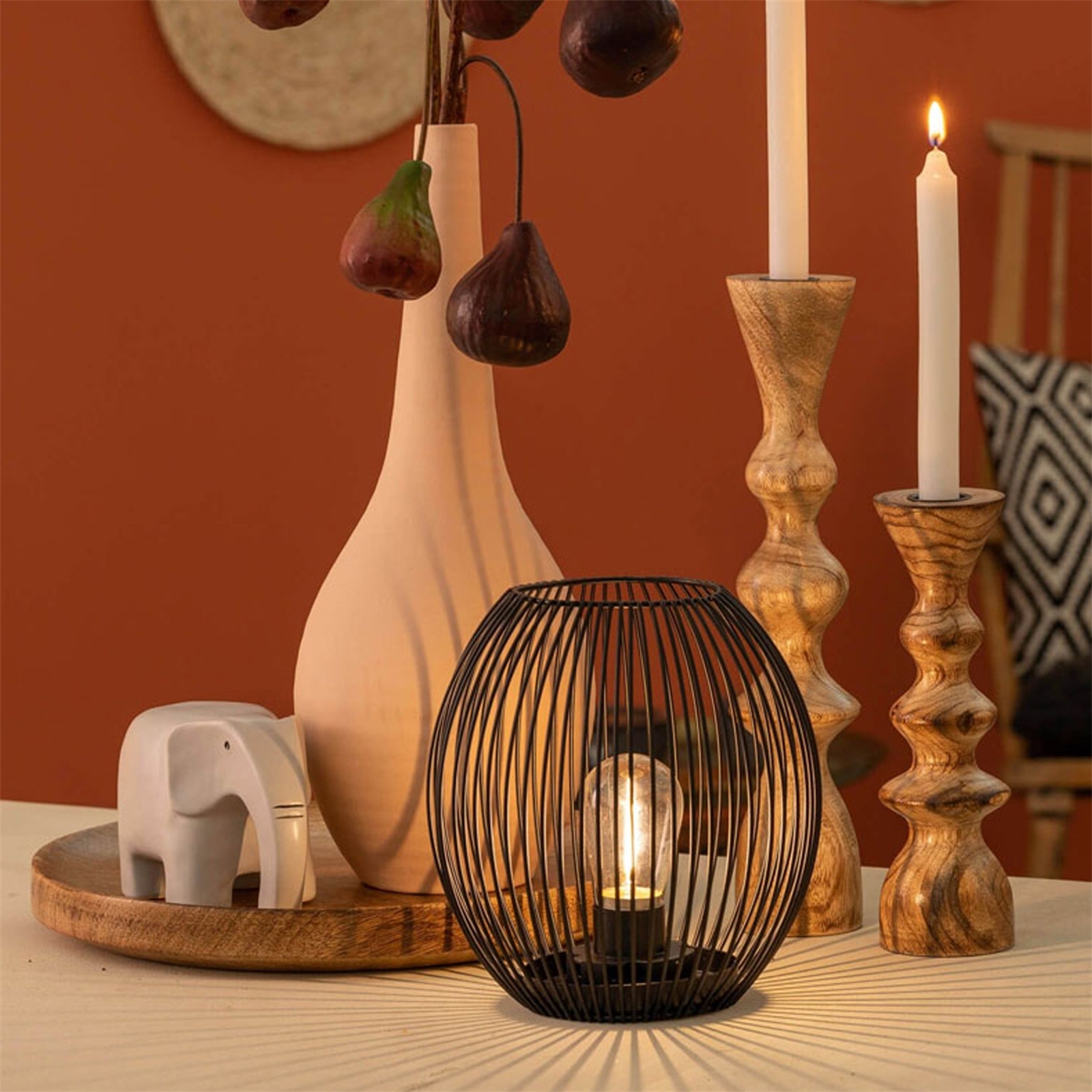 Die schönen Leuchter aus edlem Mangoholz aus der Serie Posto von Leonardo sind wunderbar in der Gruppe mit unterschiedlichen Höhen und Größen. Die Kerzenleuchter sind für handelsübliche Stabkerzen geeignet und bringen einen schönen Boho-Stil in Ihr Zuhause. Maße Ø 6 cm, Höhe 20 cm