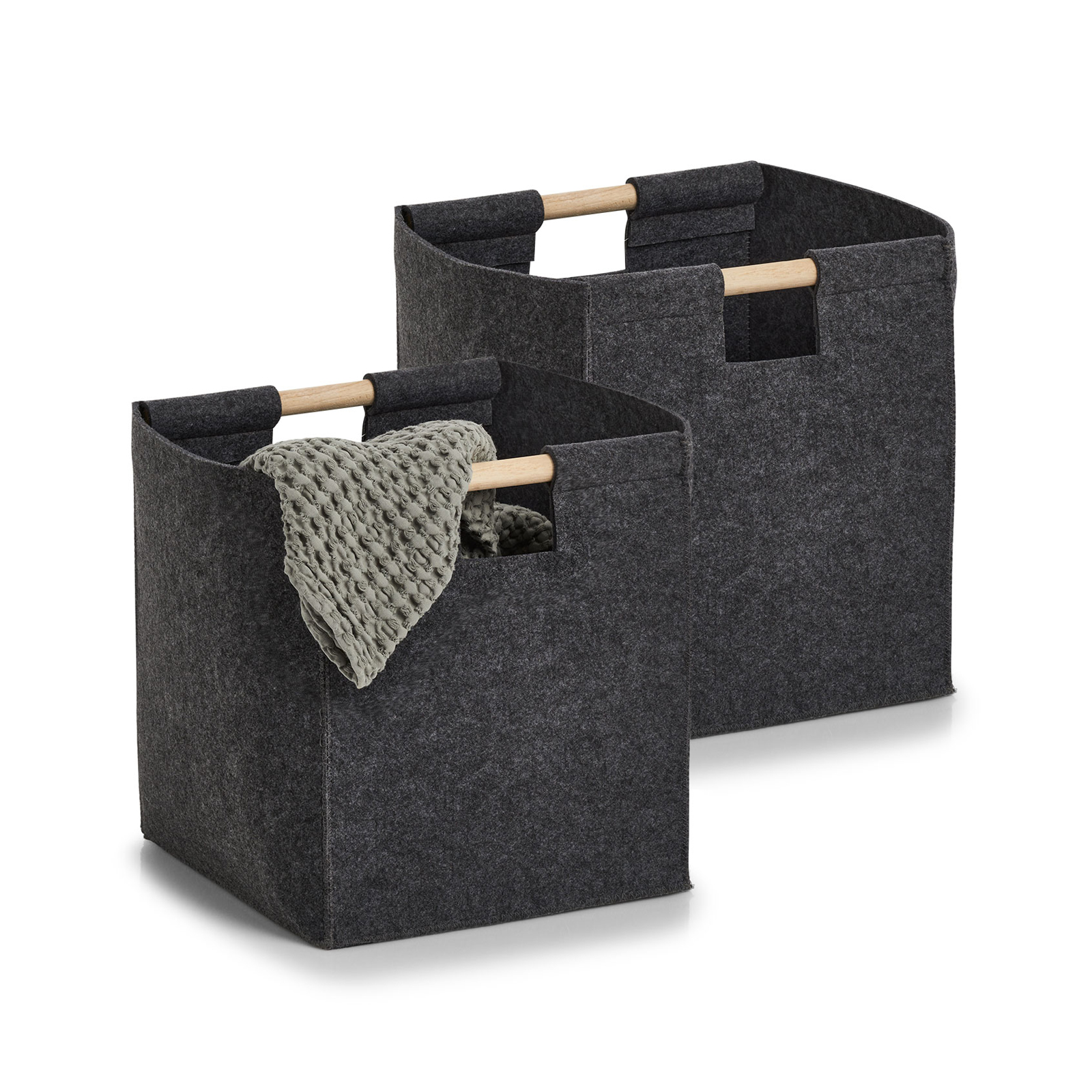 Produktinformationen "Aufbewahrungskorb, Filz/Holz, anthrazit 2er Set"
