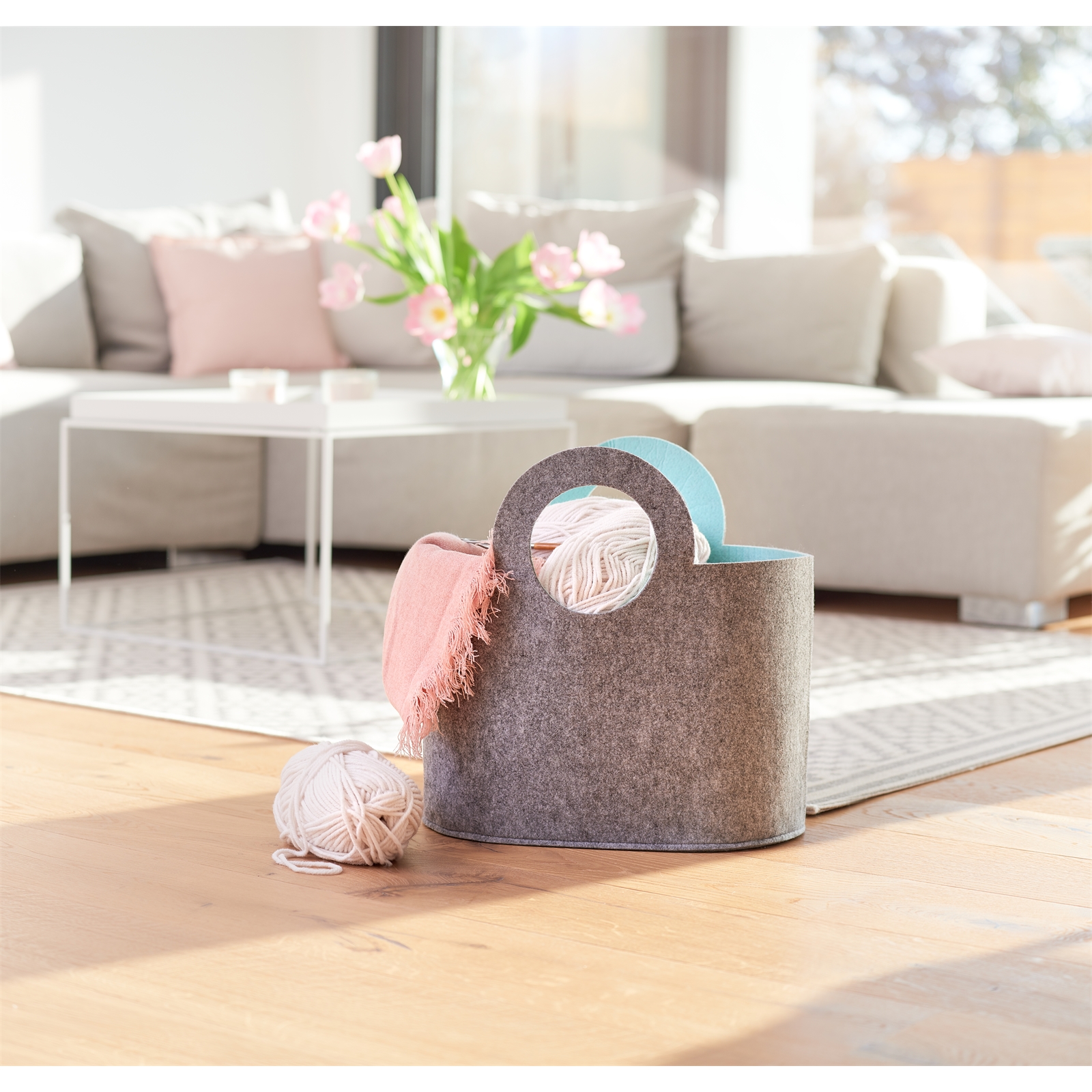 Kundenbewertungen für "Wäschesammler "Two-tone", Filz, grau/aqua"