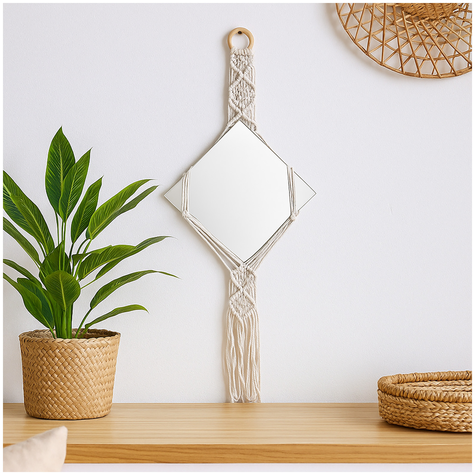 | Besonderheiten: | Wandspiegel Makramee Stoffgeflecht |