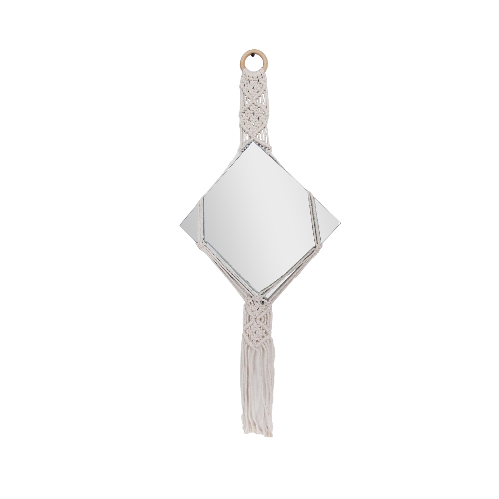 | Besonderheiten: | Wandspiegel Makramee Stoffgeflecht |