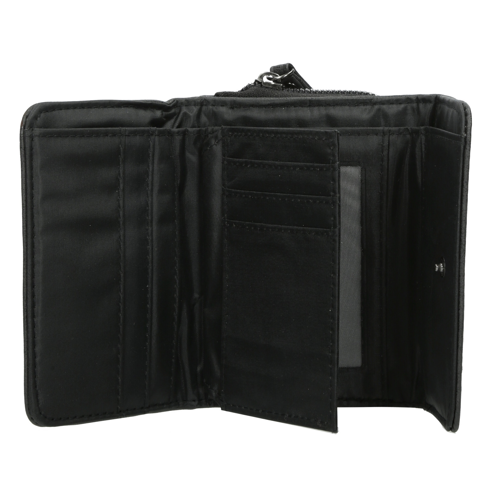 Wunderschöne Geldbörse mit Umschlag aus stilvollem Kunstleder. Das Portemonnaie verfügt über genügend Fächer für Papiergeld und Münzen und bietet viel Platz für Papiergeld, Münzen, Karten usw. Unter der Klappe verfügt das Portemonnaie über ein Scheinfach, 5 Kreditkartenfächer, 2 Klarsichtfächer und 2 Steckfächer. Es verfügt außerdem über ein Reißverschlussfach mit 2 Einsteckfächern. Maße: L/B/H 13,5 x 4 x 9 cm, Material: Kunstleder