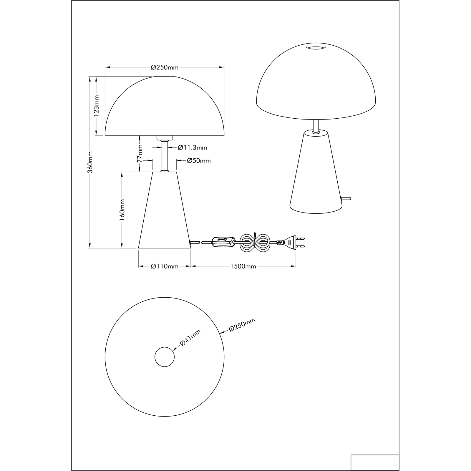 | Maße: | Höhe 36 cm, Schirm Ø / H 25 x 12 cm |
