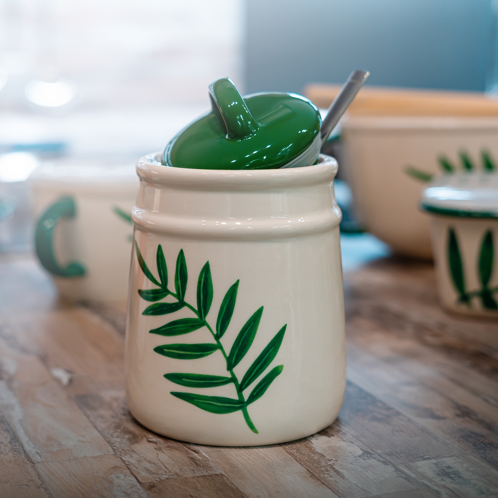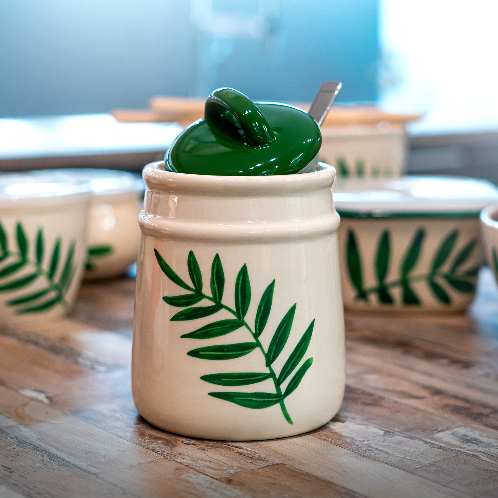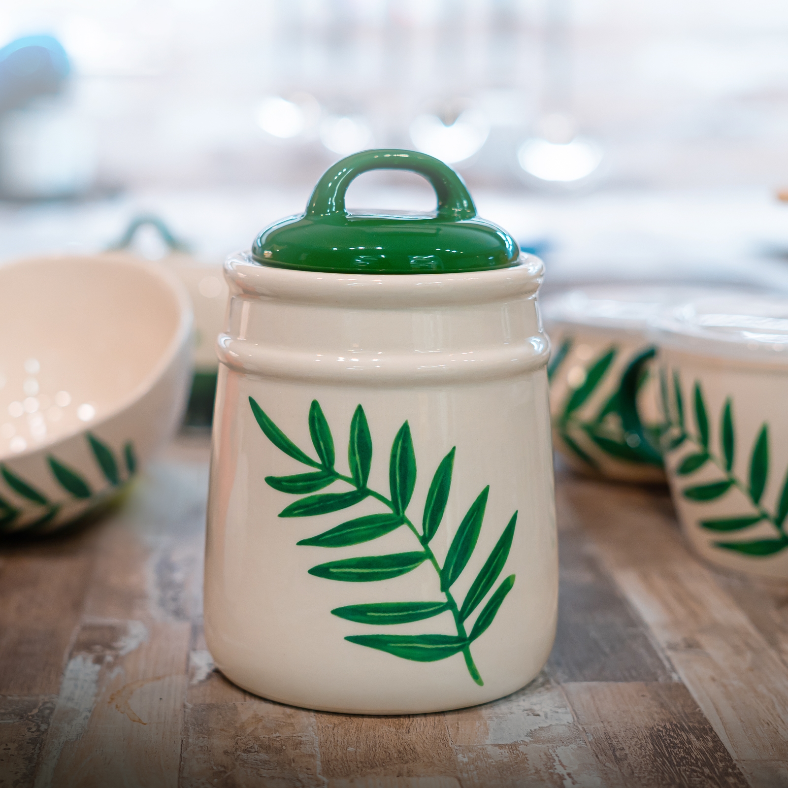 Produktinformationen "Aufbewahrungsbehälter, Olivenzweig gemustert keram"