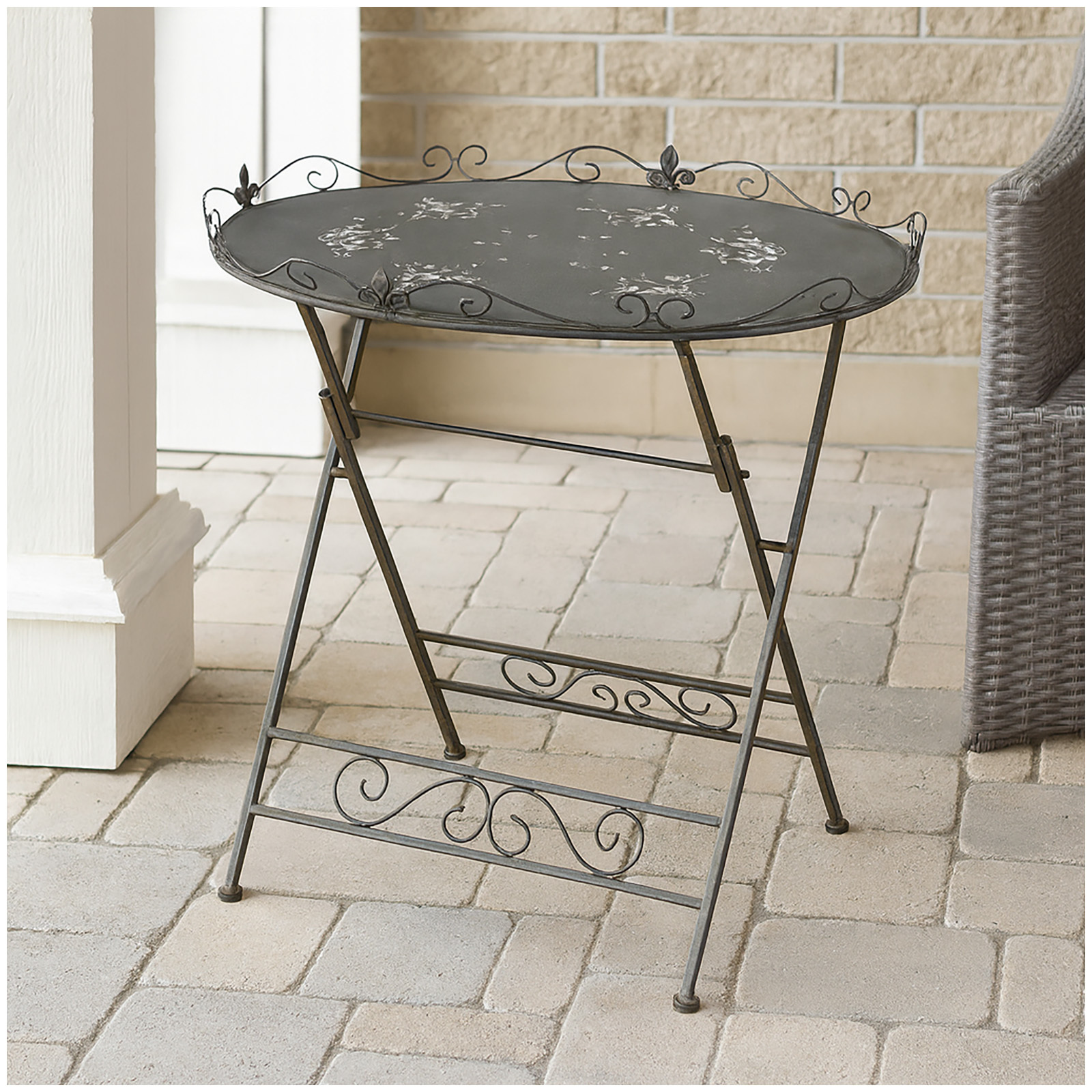 Die wunderschönen Zierornamenten auf und an der Tischplatte und am Gestell, machen diesen Beistelltisch zu einem besonderen Hingucker auf der Veranda, Terrasse oder im Garten.