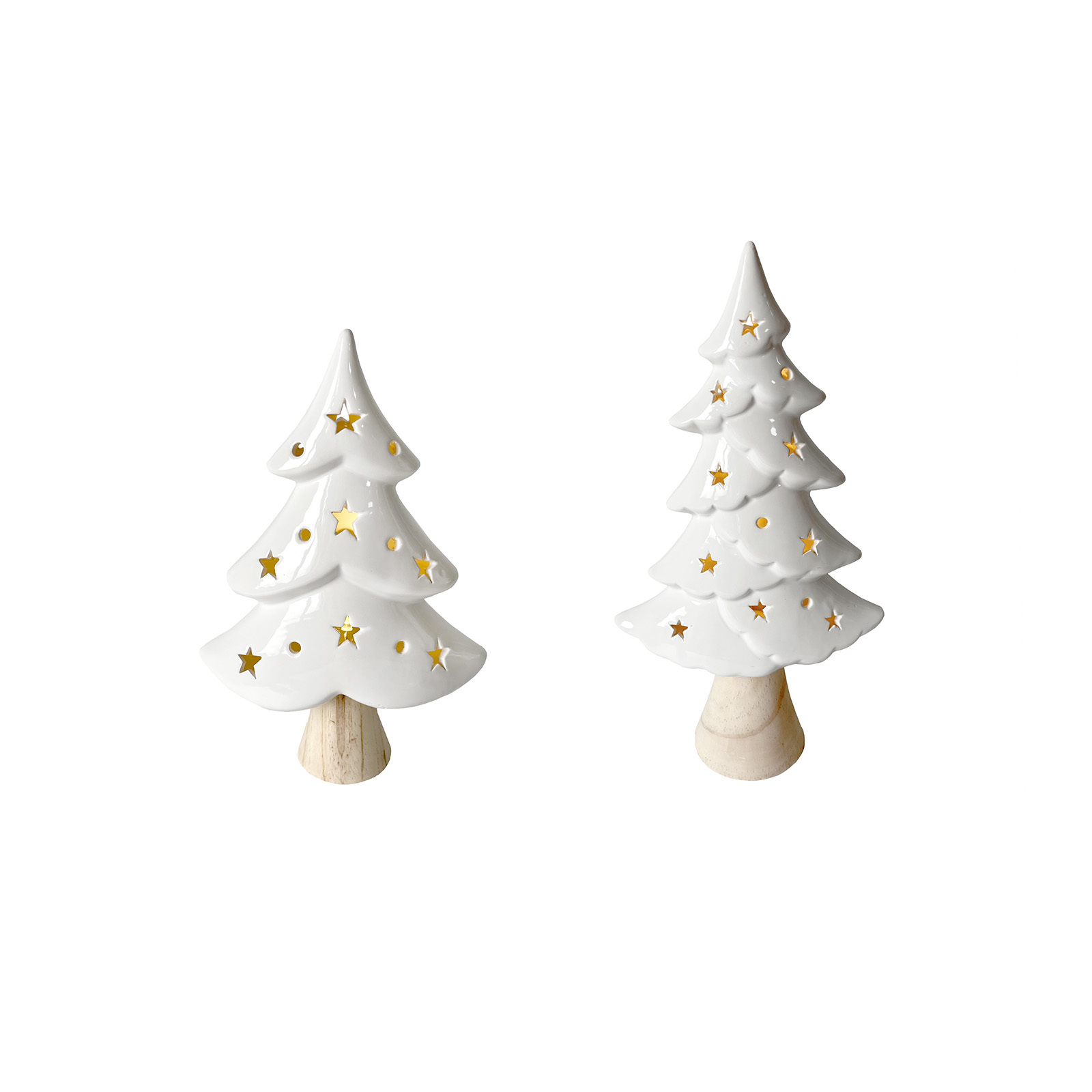 Die niedlich beleuchteten Winterbäume aus Porzellan mit Zedernholzfuß. Die Weihnachtsdekoration ist mit einer LED-Beleuchtung ausgestattet und kann flexibel aufgestellt werden. Sie benötigt keinen Netzanschluss, die Beleuchtung erfolgt im Batteriebetrieb. Ideal auch als Geschenk.