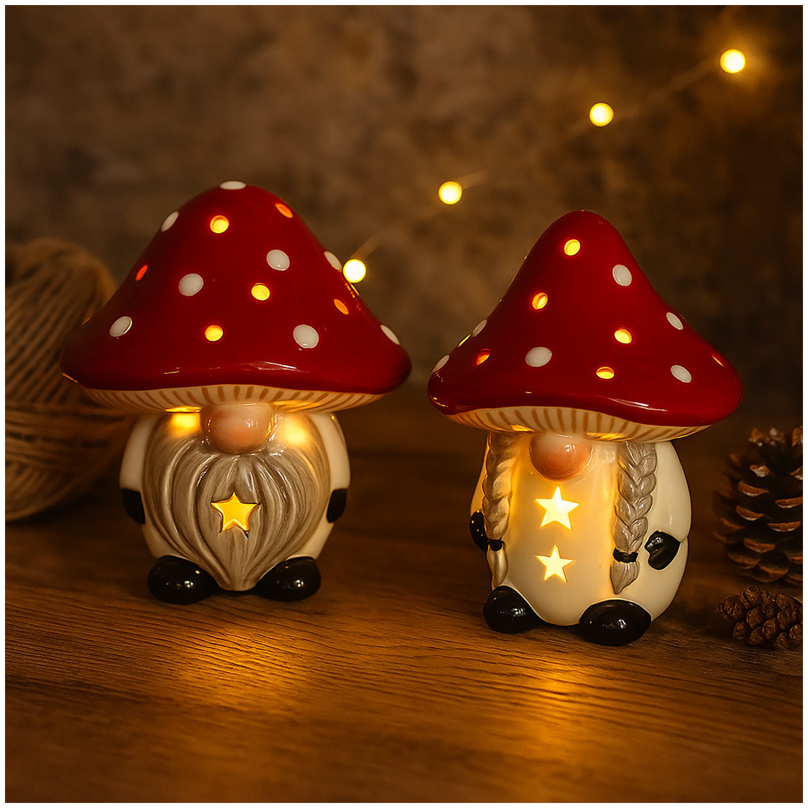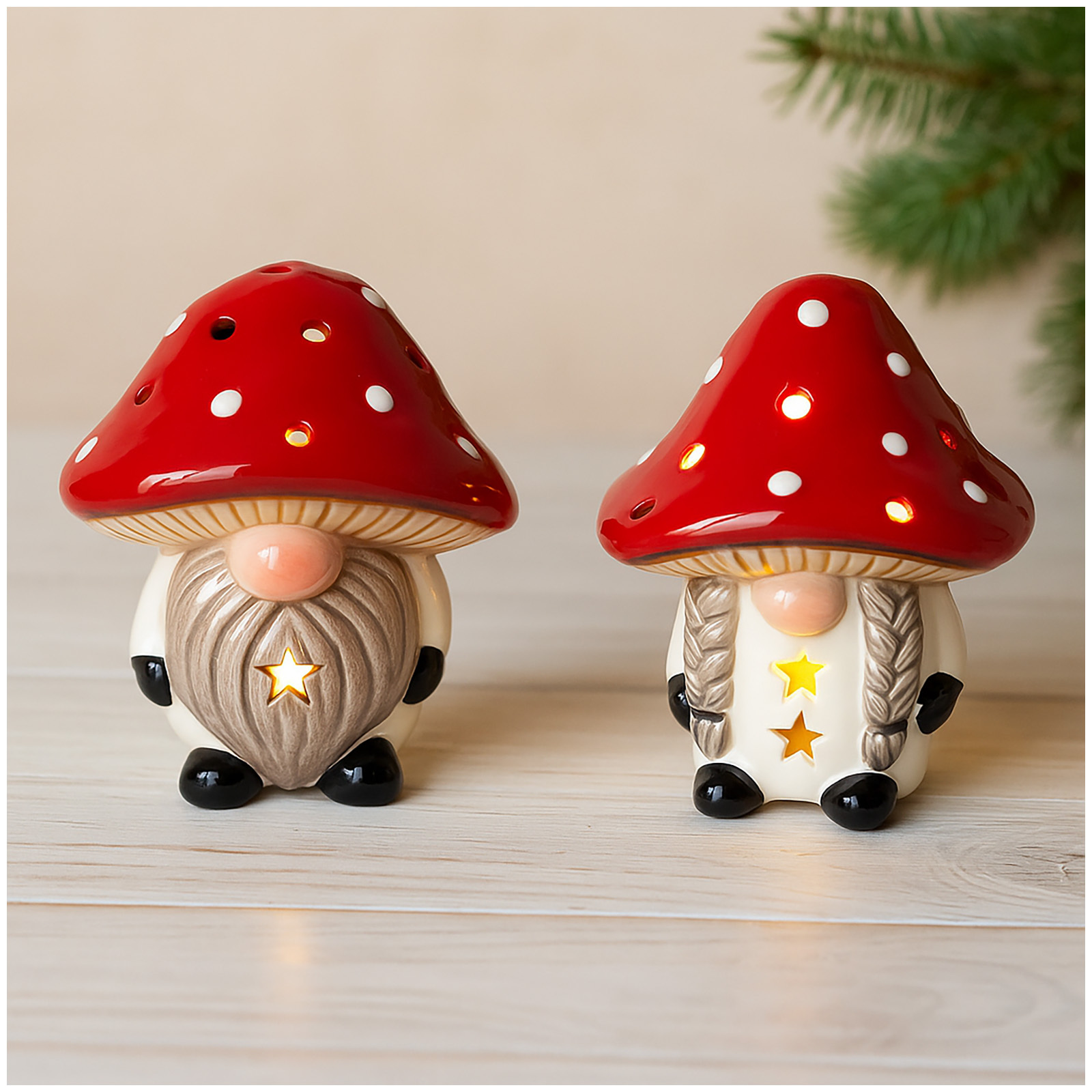 Produktinformationen "HTI-Living Wichtel LED Fliegenpilzpärchen Set"