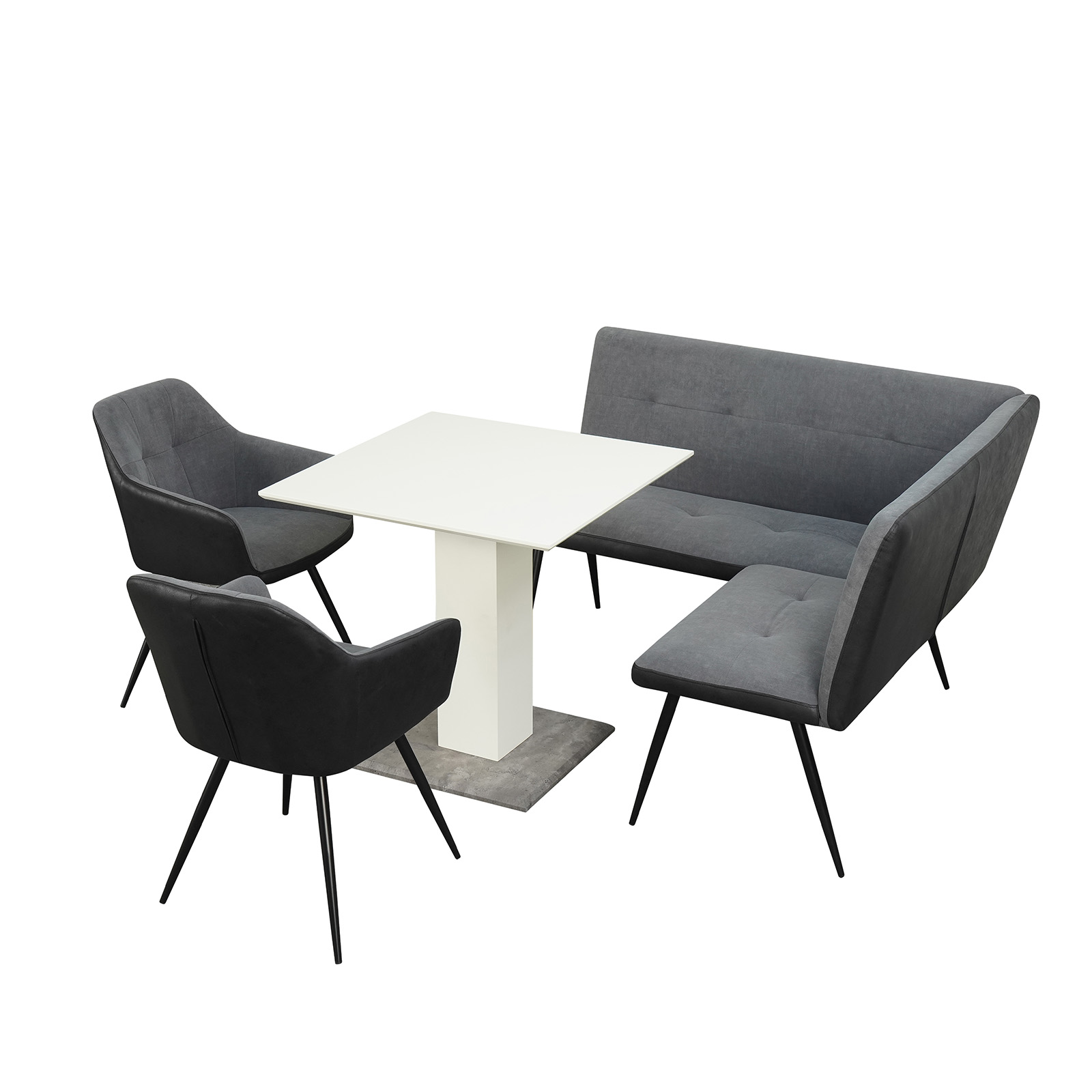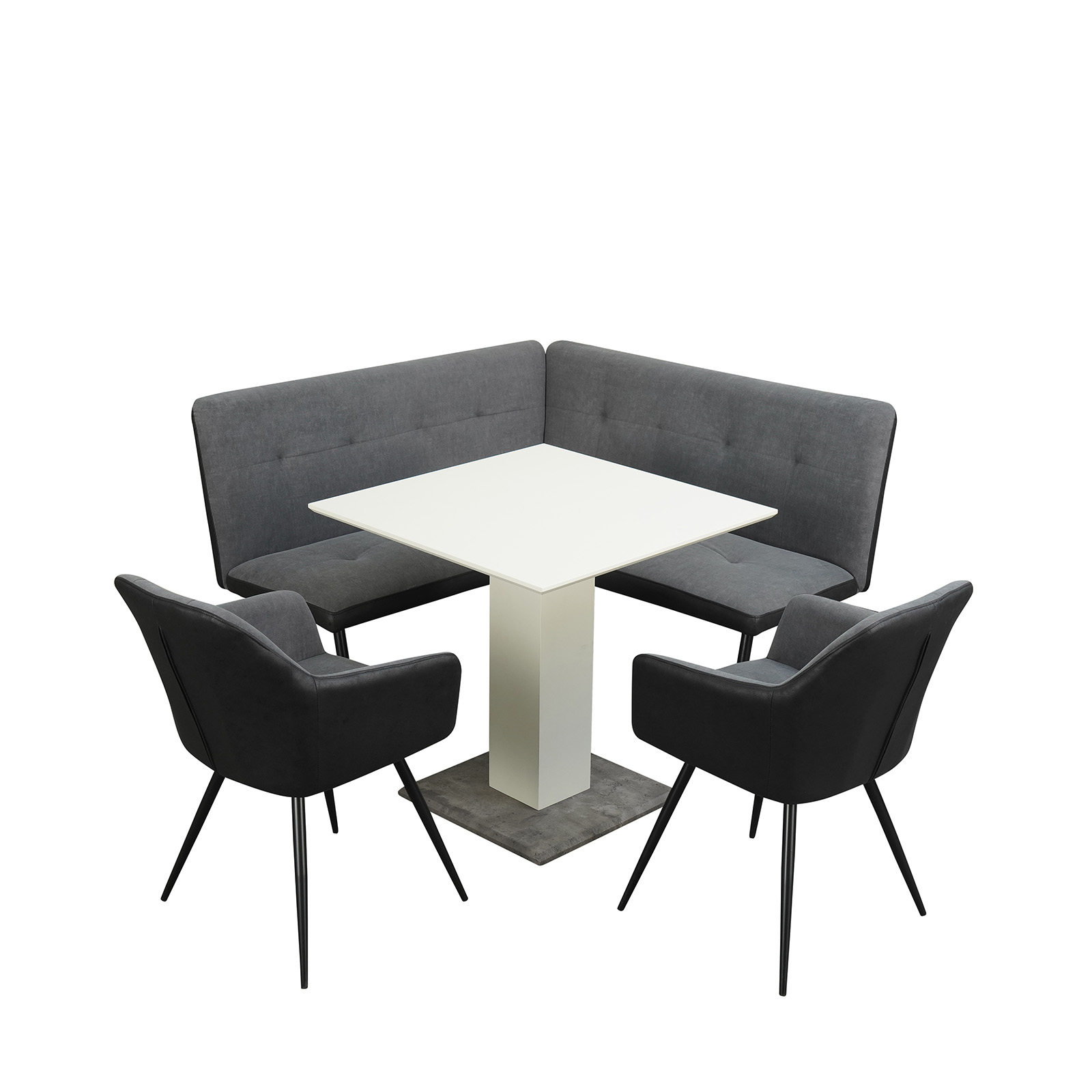 | Lieferumfang: | 1 Esstisch, 1 Eckbank, 2 Stühle |