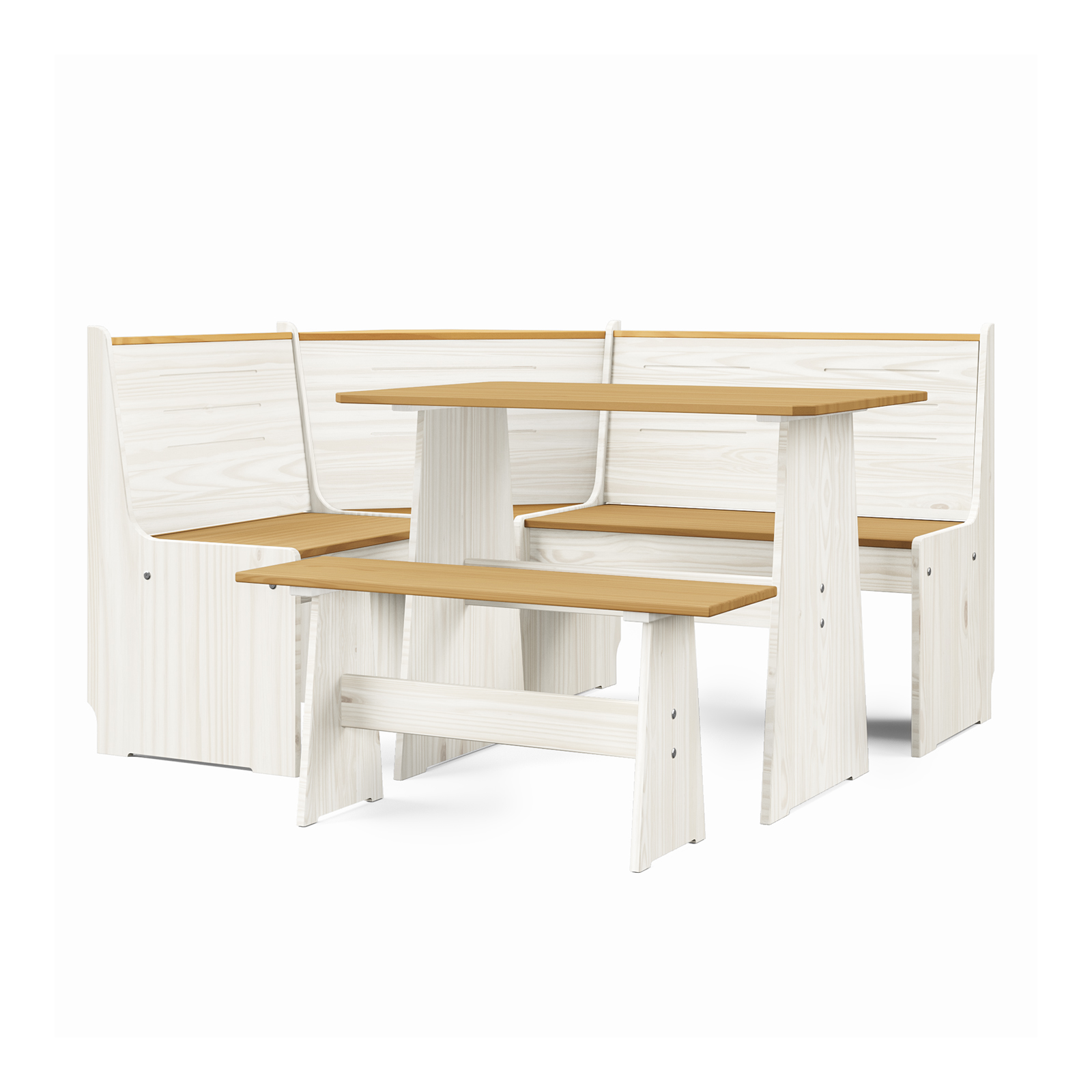 | Lieferumfang: | 1 Esstisch, 1 Eckbank mit Rücklehne, 1 Sitzbank |