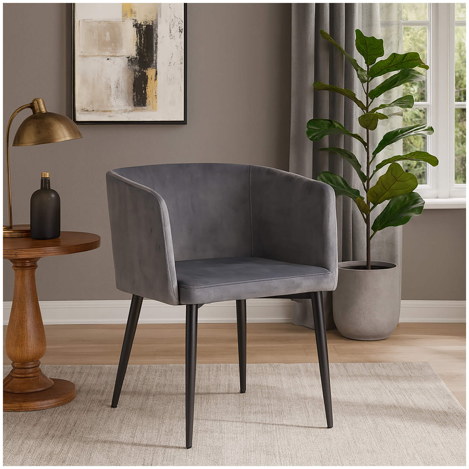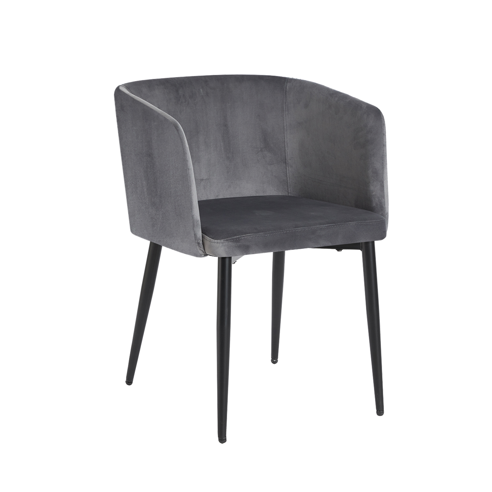 Der Stuhl Destin mit samtiger Oberfläche in zeitlosem Grau verleiht Ihrem Zuhause modernen Retro-Charme. Er besticht zudem durch seine Sitzschale in leicht eckigem Design mit halbhoher Lehne. Weich gepolstert und mit Armlehnen lässt es sich bequem darauf Platz nehmen. Maße 58 x 73 x 56 cm, Sitzhöhe 46 cm, belastbar bis 120 kg
