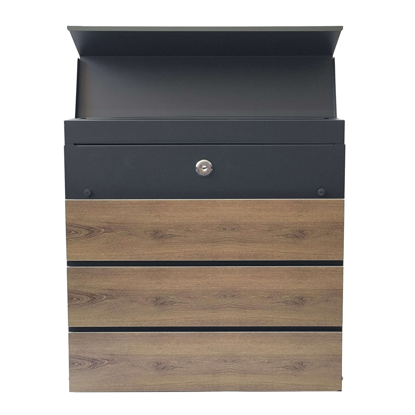 Produktinformationen "Moderner Briefkasten mit Holzoptik Amin Grau Natur"