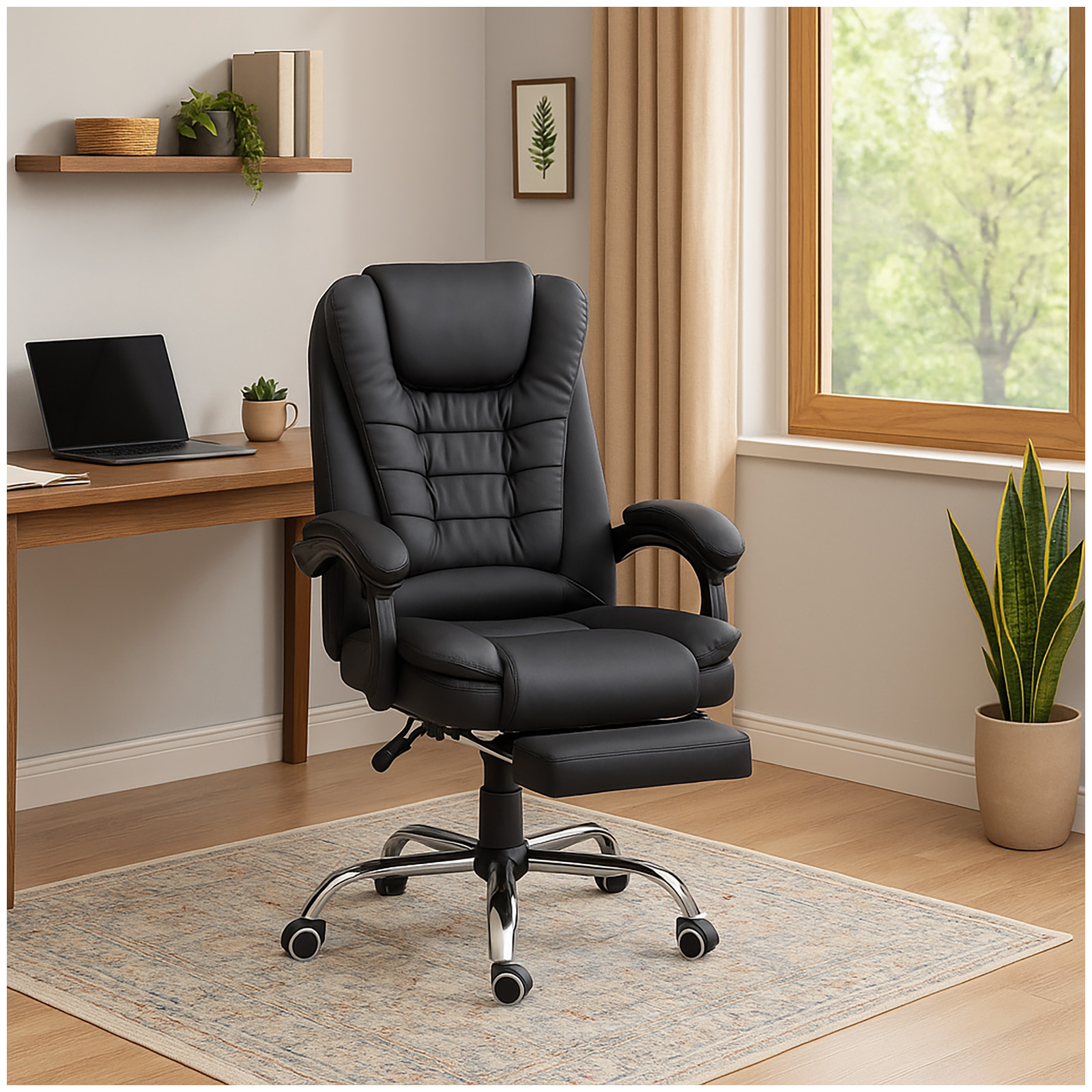 Produktinformationen "Chefsessel Eddie Schwarz PU Fußstütze/Massagef"