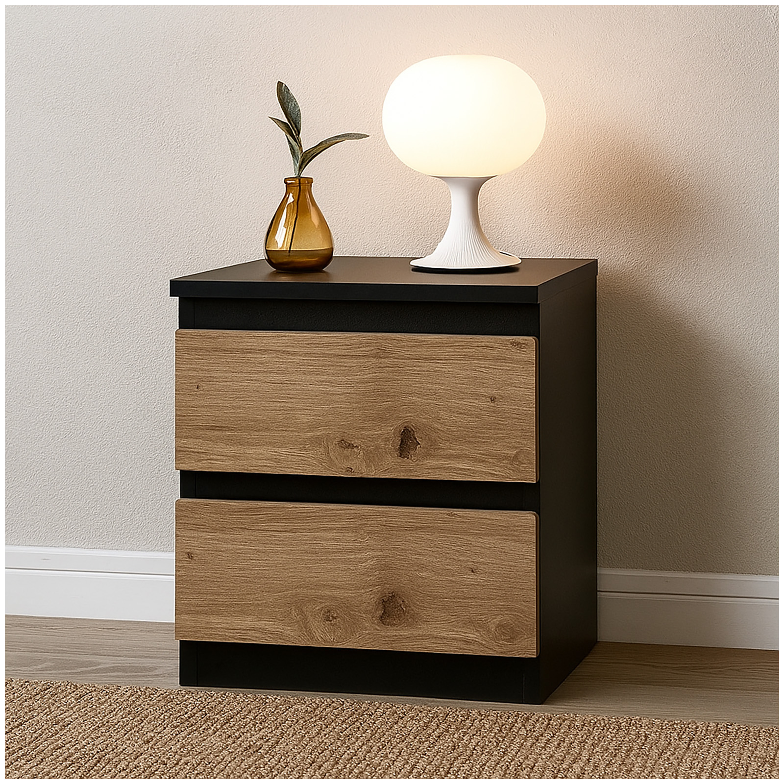 Produktinformationen "Kommode Thekla 2 Schubladen schwarz-artisaneiche"