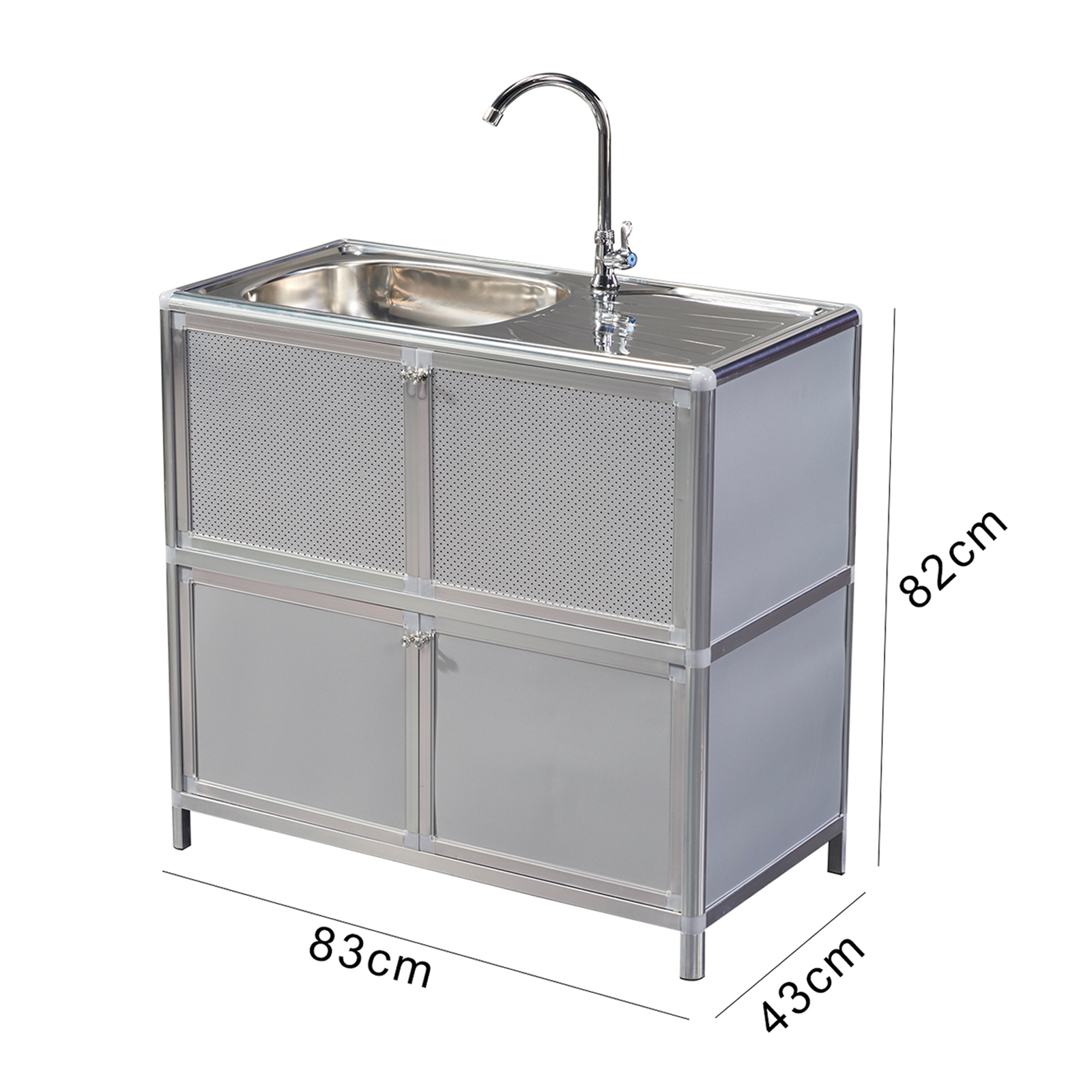 Mit den kompakten Maßen von B/H/T 83 x 82 x 43 cm eignet sich die Spüle auch für kleinere Außenbereiche. Ausgestattet mit einem Kaltwasserhahn (3/4 Zoll Anschluss) sowie einem praktischen Wasserabflussschlauch, bietet sie optimalen Komfort beim Arbeiten im Freien – ob zum Abwaschen von Geschirr, Säubern von Lebensmitteln oder beim Grillen.