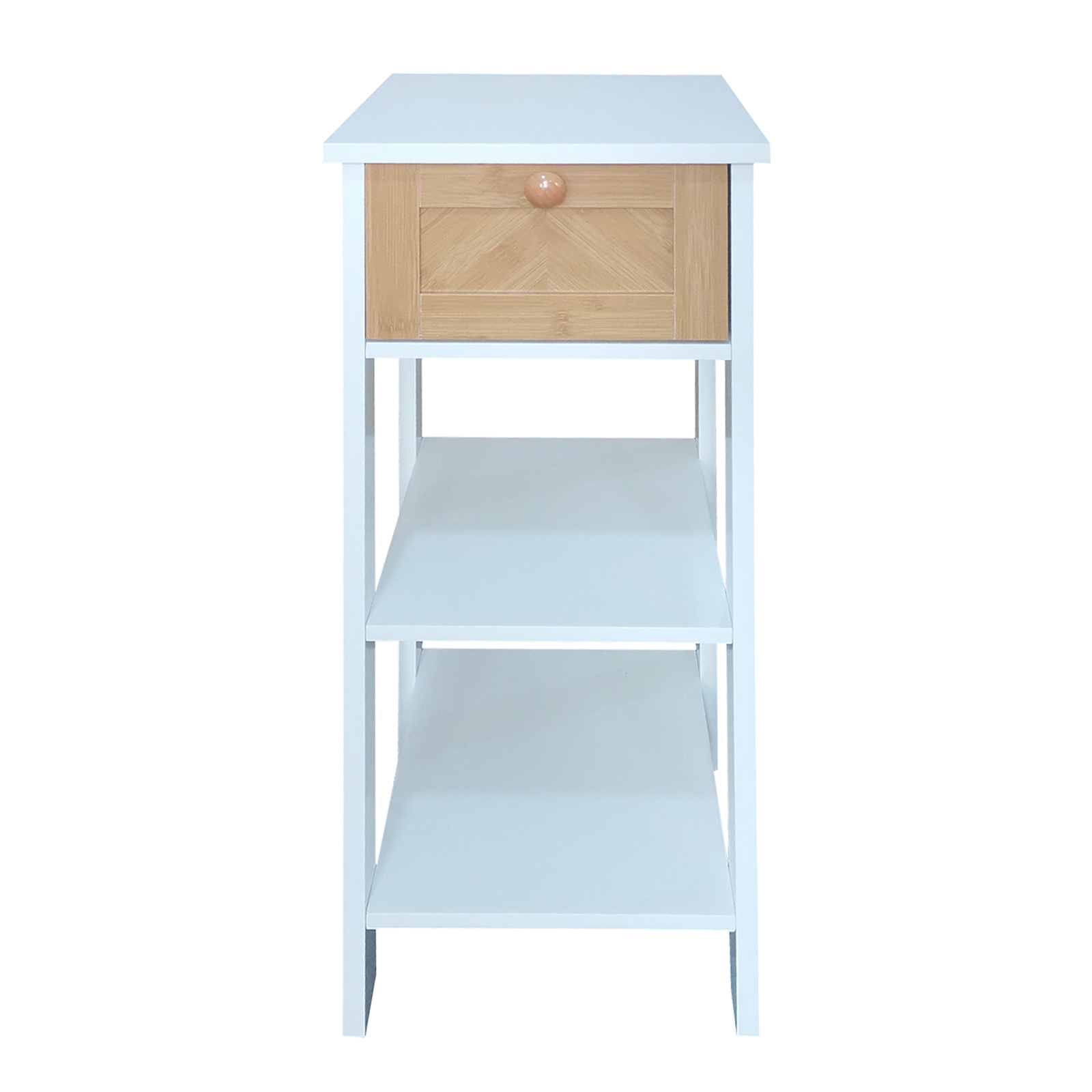 Der bezaubernde Beistelltisch Jerik fügt sich harmonisch in Ihr Wohnambiente im Landhausstil ein. Er verleiht auch Ihrem Zuhause mit Boho- oder skandinavischem Flair besonderen Charme. In zeitlosem Weiß mit drei praktischen Ablageflächen und einer Schublade in Holzoptik findet er in nahezu jedem Raum Verwendung. Als Blumenhocker im Wohnzimmer kommen dekorative Wohnaccessoire darauf besonders zur Geltung. Im Schlafzimmer als Nachtkonsole neben dem Bett platziert, macht der Beistelltisch ebenfalls eine gute Figur. Und selbst als Telefontisch im Flur mit Stauraum für Schreibutensilien, Sonnenbrille und Schlüssel kommt das schlichte Tischchen zum Einsatz.