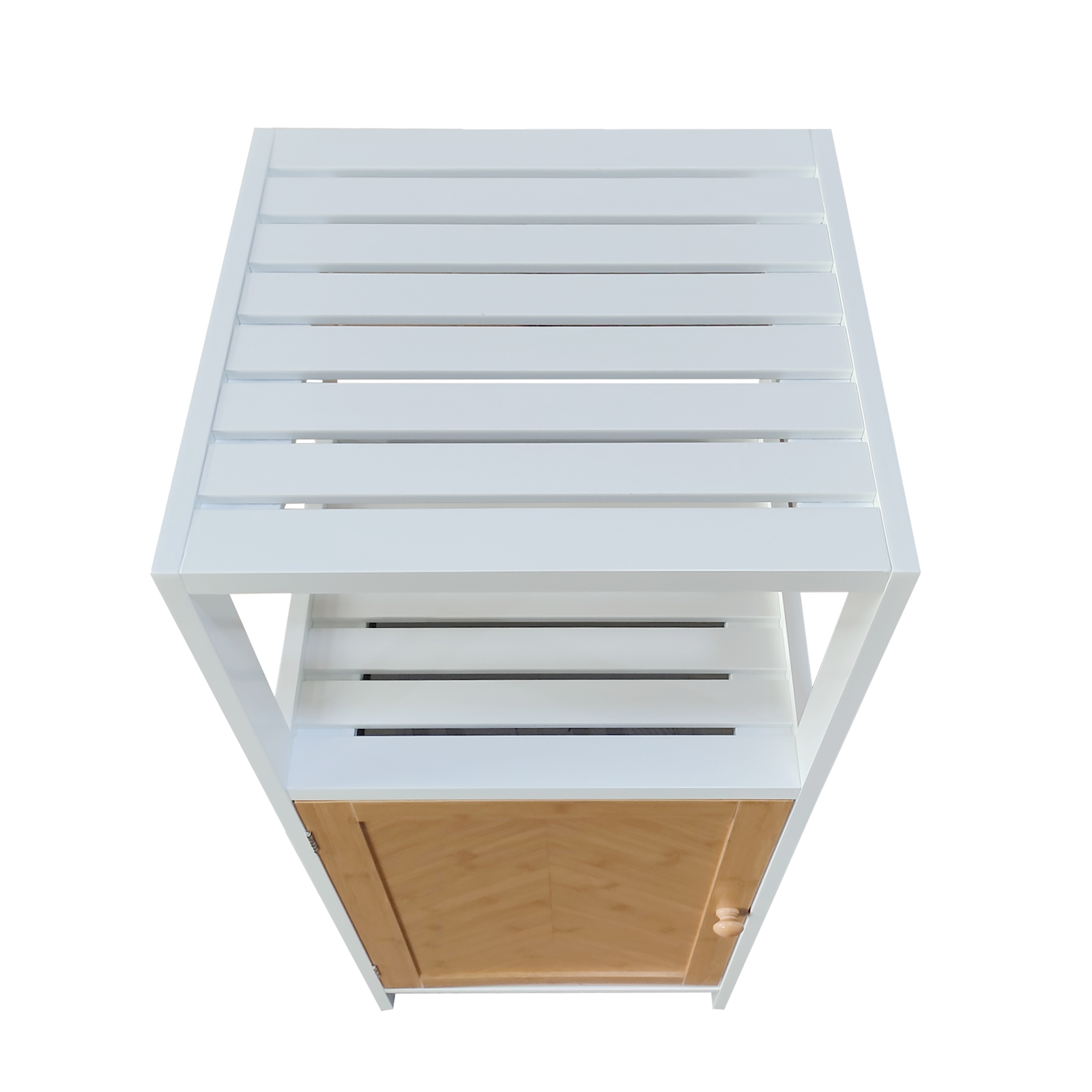 Mit seinen kompakten Maßen von 40 x 98 x 36 cm (B/H/T) ist der Schrank platzsparend und bietet dennoch viel Stauraum. Hinter der Tür befinden sich 2 zusätzliche Regalfächer, ideal für Handtücher, Pflegeprodukte oder Reinigungsmittel. Das offene Fach eignet sich perfekt für dekorative Elemente, Parfümflaschen oder oft genutzte Utensilien.