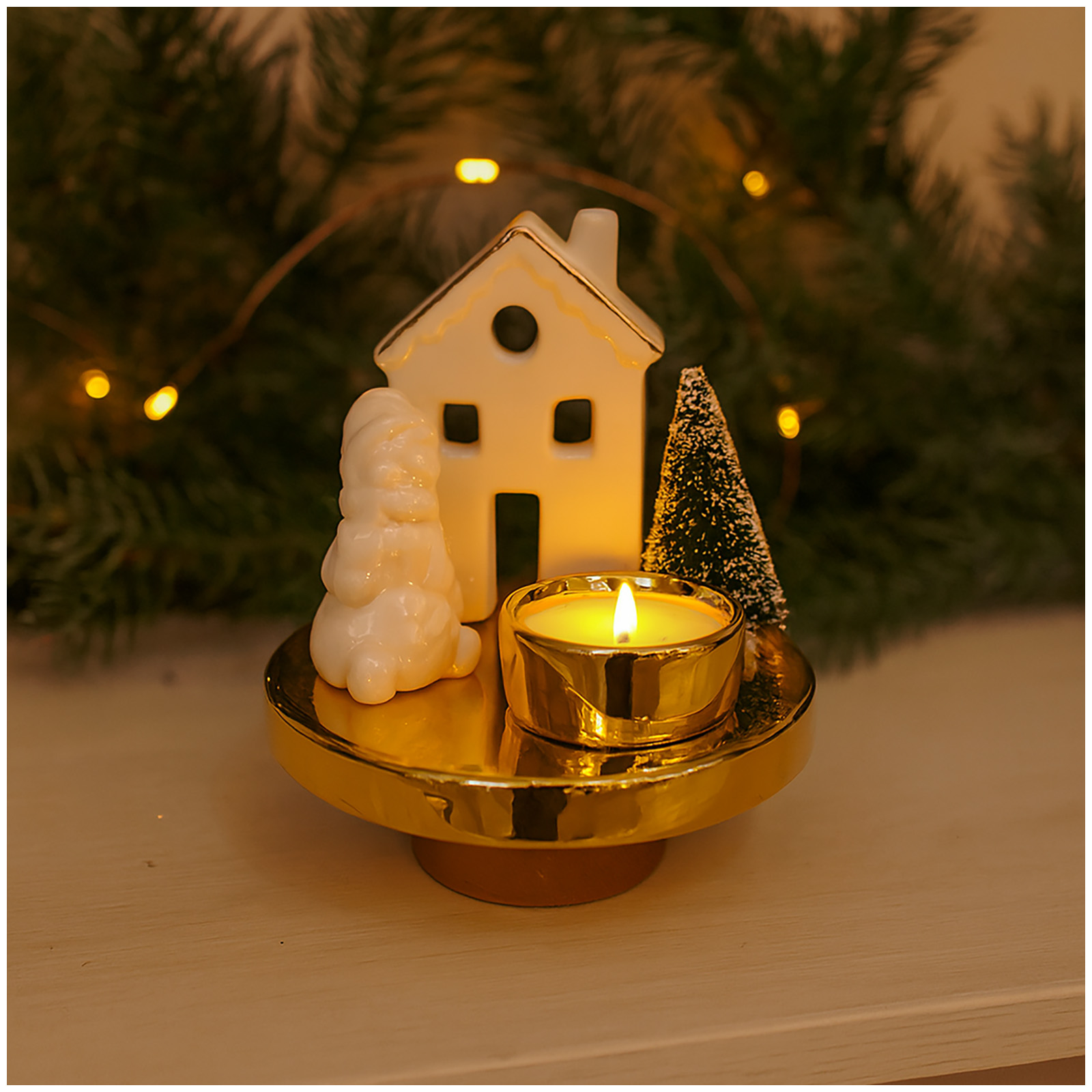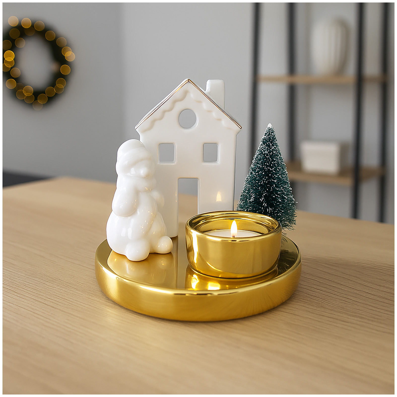 Produktinformationen "Teelichthalter mit Haus, Schneemann und Baum"