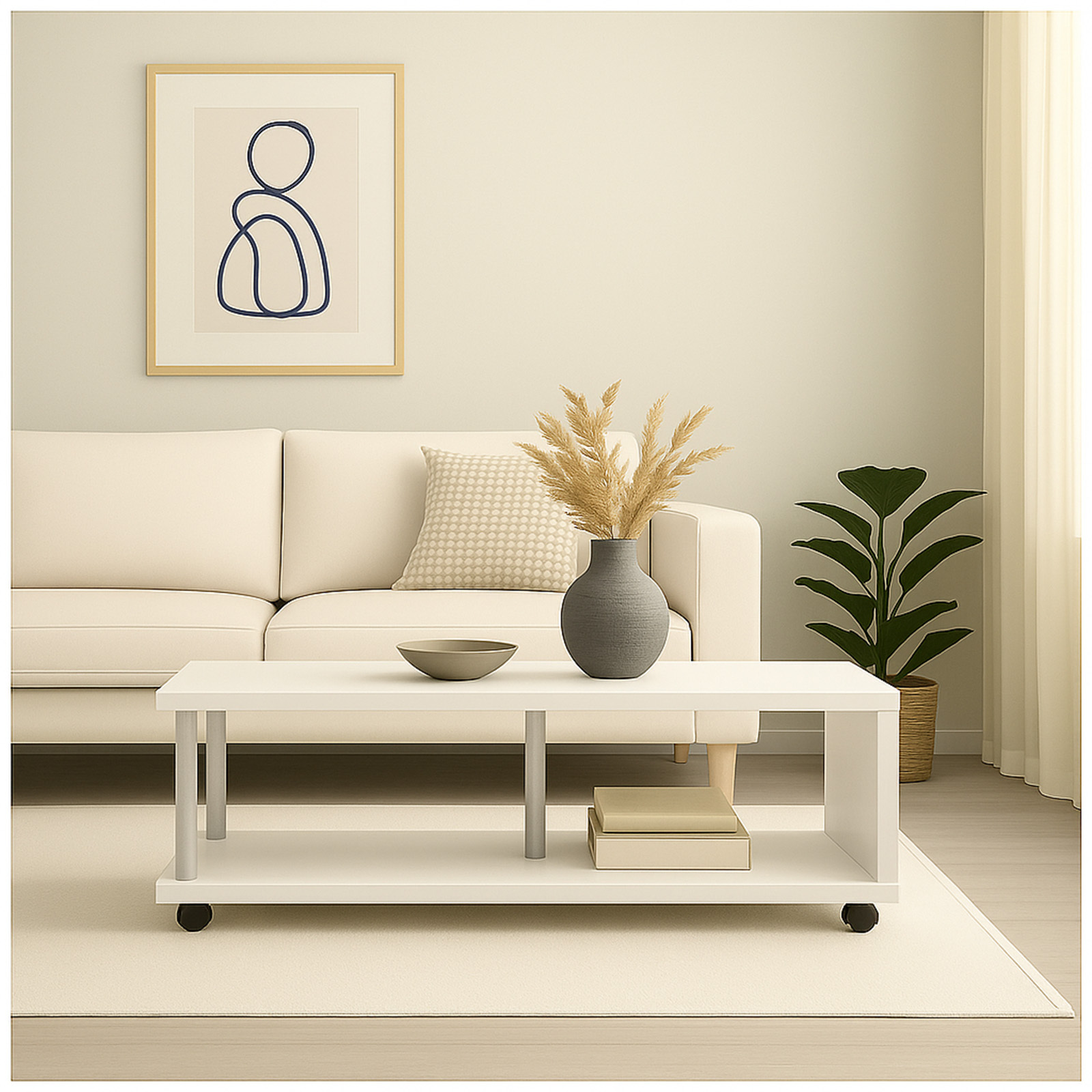 HTI-Living Weiß Breite 110 cm Couchtisch mit Ablagefach und Rollen