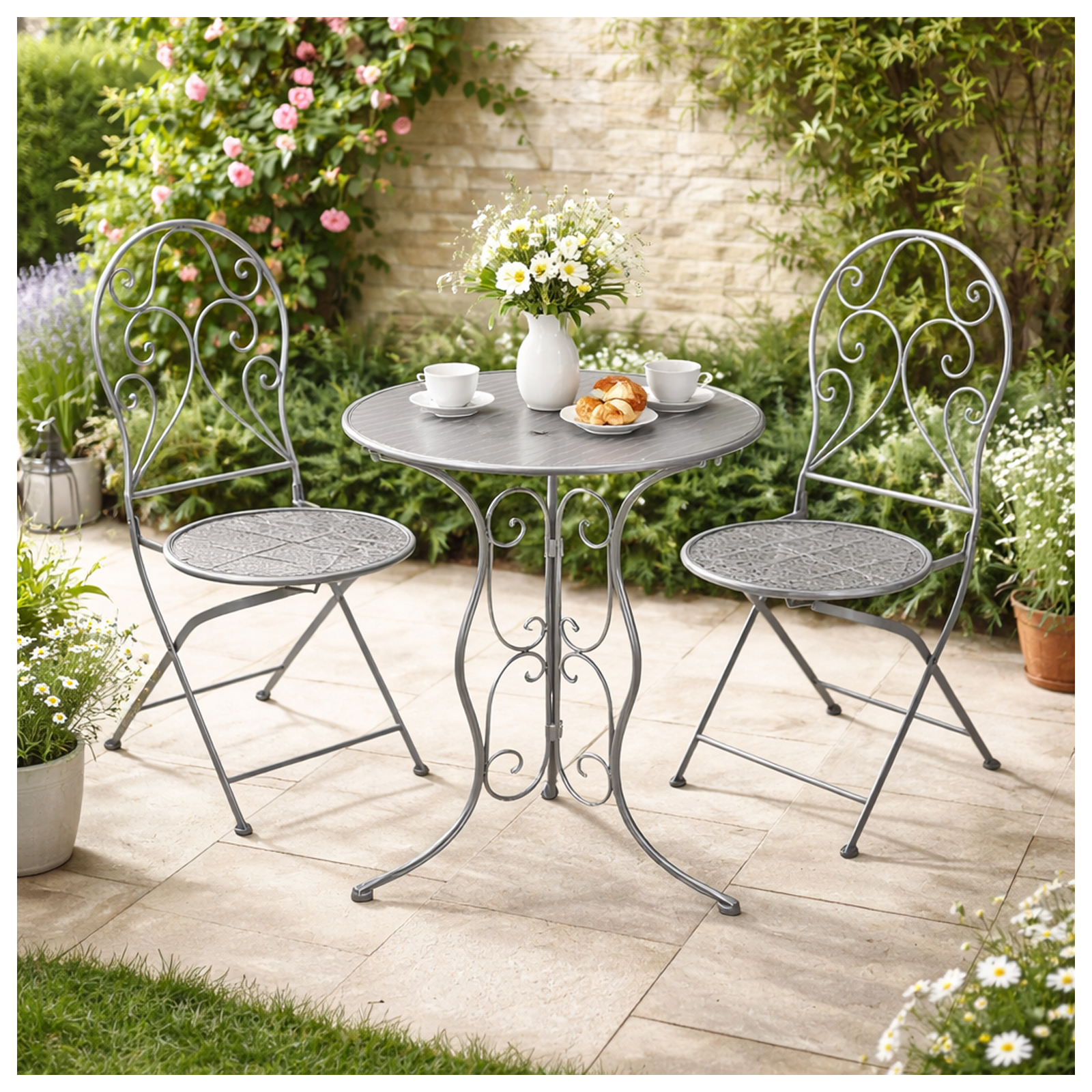 Kombiniert mit den passenden Stühlen ergänzt die romantische Sitzgruppe perfekt Ihre Wohn- und Gartendekoration. Die Stühle sind nicht im Lieferumfang enthalten, können jedoch separat bestellt werden.