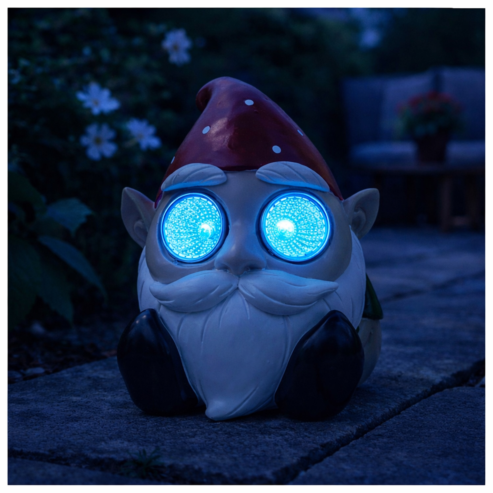 Diese liebevoll gestaltete Solardekoleuchte in Form eines Zwerges ist ein echter Hingucker für Garten, Balkon oder Terrasse. Mit seinen großen, leuchtenden Augen und dem detailreichen Design sorgt er tagsüber für Charme und erstrahlt nachts dank integrierter Solar-LED in stimmungsvollem Licht.