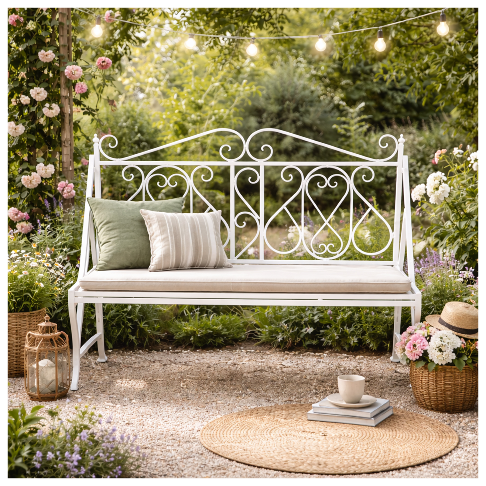 Zaubern Sie mit der Gartenbank Solea einen stilvollen Akzent auf dem Balkon, der Terrasse und im Garten. Die Bank mit robustem Metallgestell sorgt mit geschwungenen Ornamenten und Landhauscharme für eine einladenden Atmosphäre. Perfekt für entspannte Stunden im Wintergarten oder überdachten Außenbereich.
