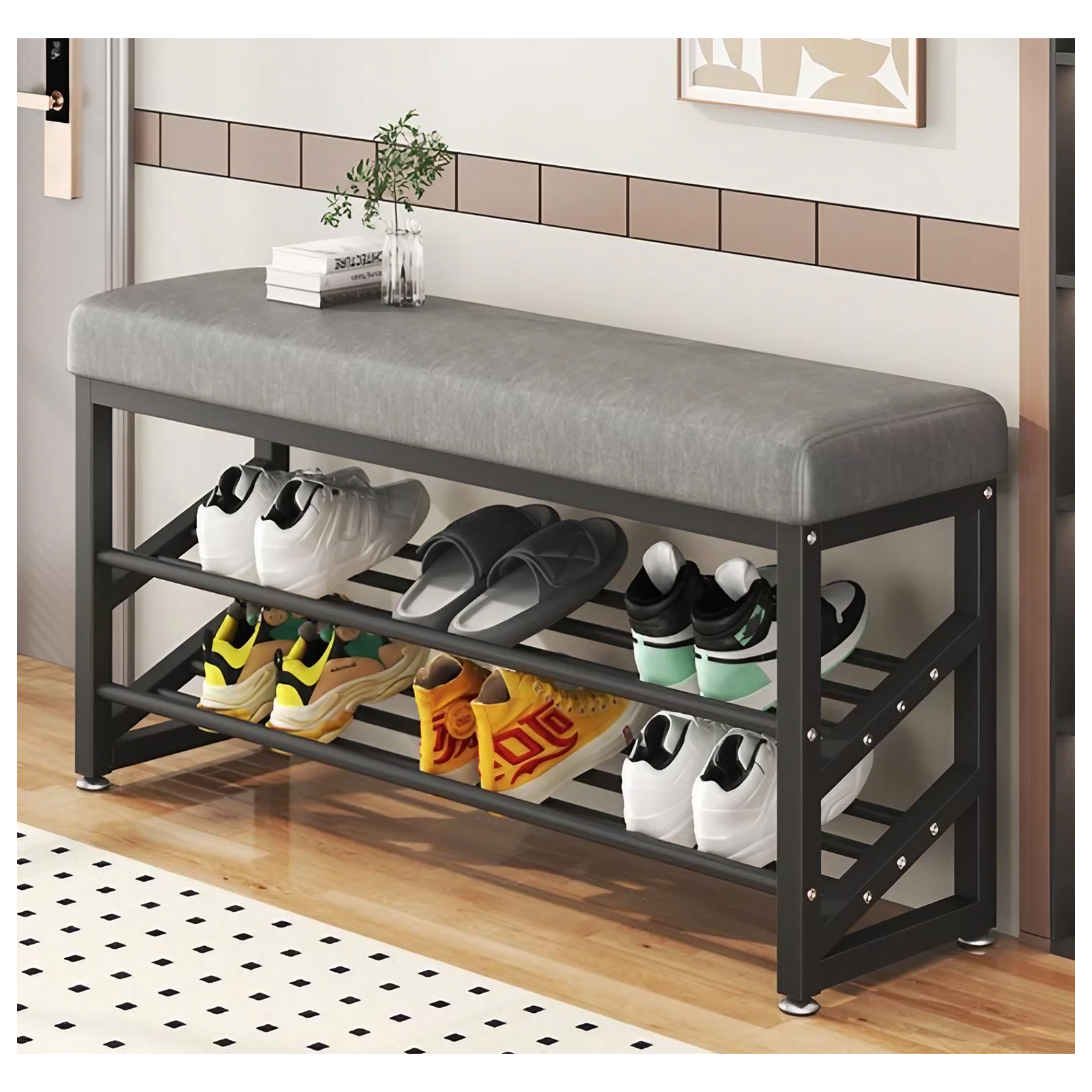 Dank der zwei Schuhablagen können bis zu 8 Paar Schuhe übersichtlich verstaut werden. Die weiche gepolsterte Sitzfläche mit pflegeleichtem Bezug aus Kunstleder ermöglicht Ihnen, ein bequemes An- und Ausziehen Ihrer Schuhe.
