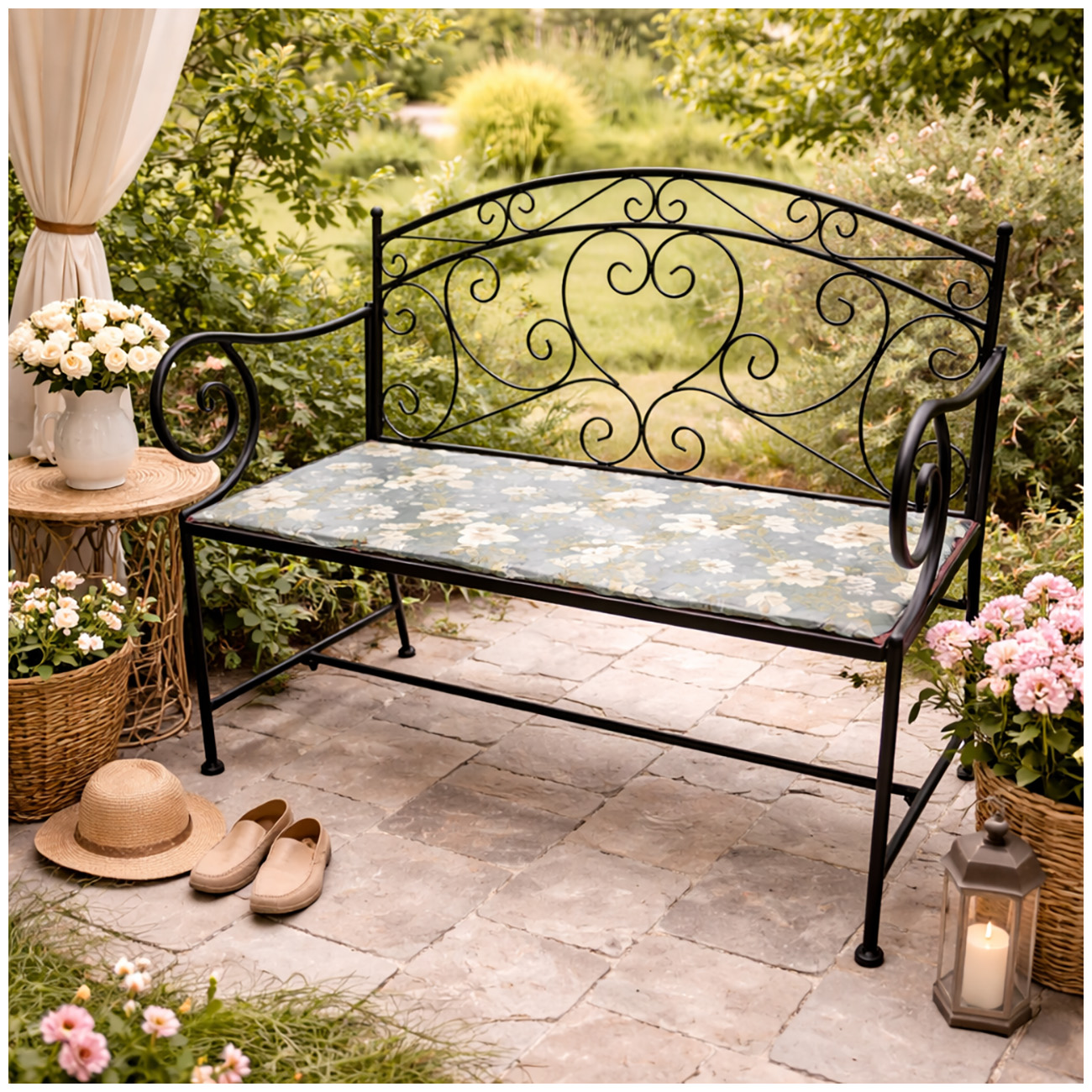 Kundenbewertungen für "Gartenbank Celia "Petunien" Motivdruck Schwarz Metall"