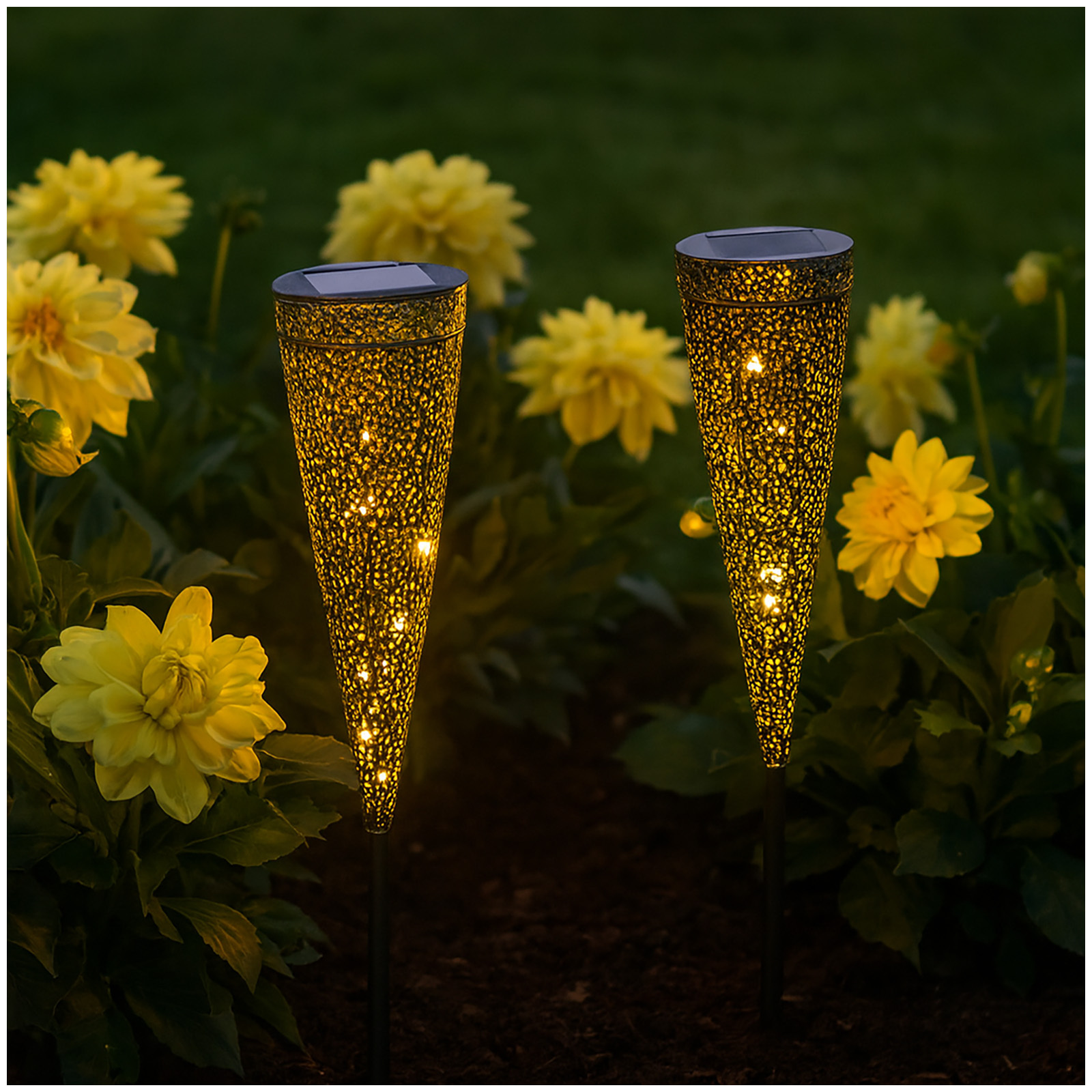 Weiterführende Links zu "HTI-Living warmweiße Gartenleuchten Solarstecker Luna 2 Stück Metall mit filigranem Mu"