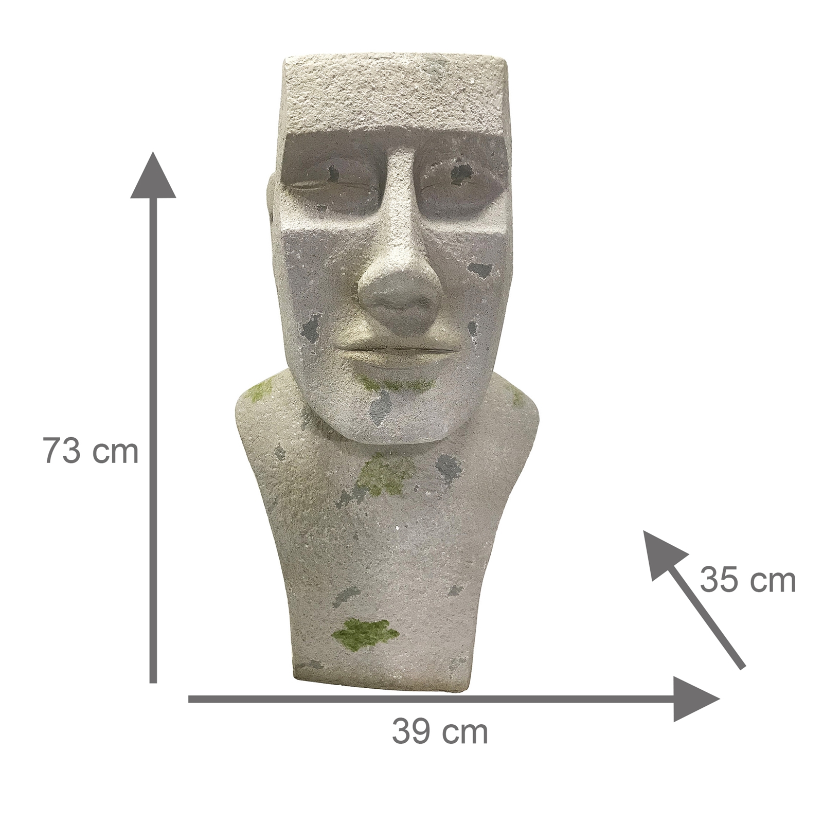 Dieser Moai-Kopf ist dekorative Gartenfigur und praktischer Pflanztopf in einem. Er erinnert an die bekannten Steinstatuen der Osterinseln und verleihen dem Garten einen mystischen Hauch.