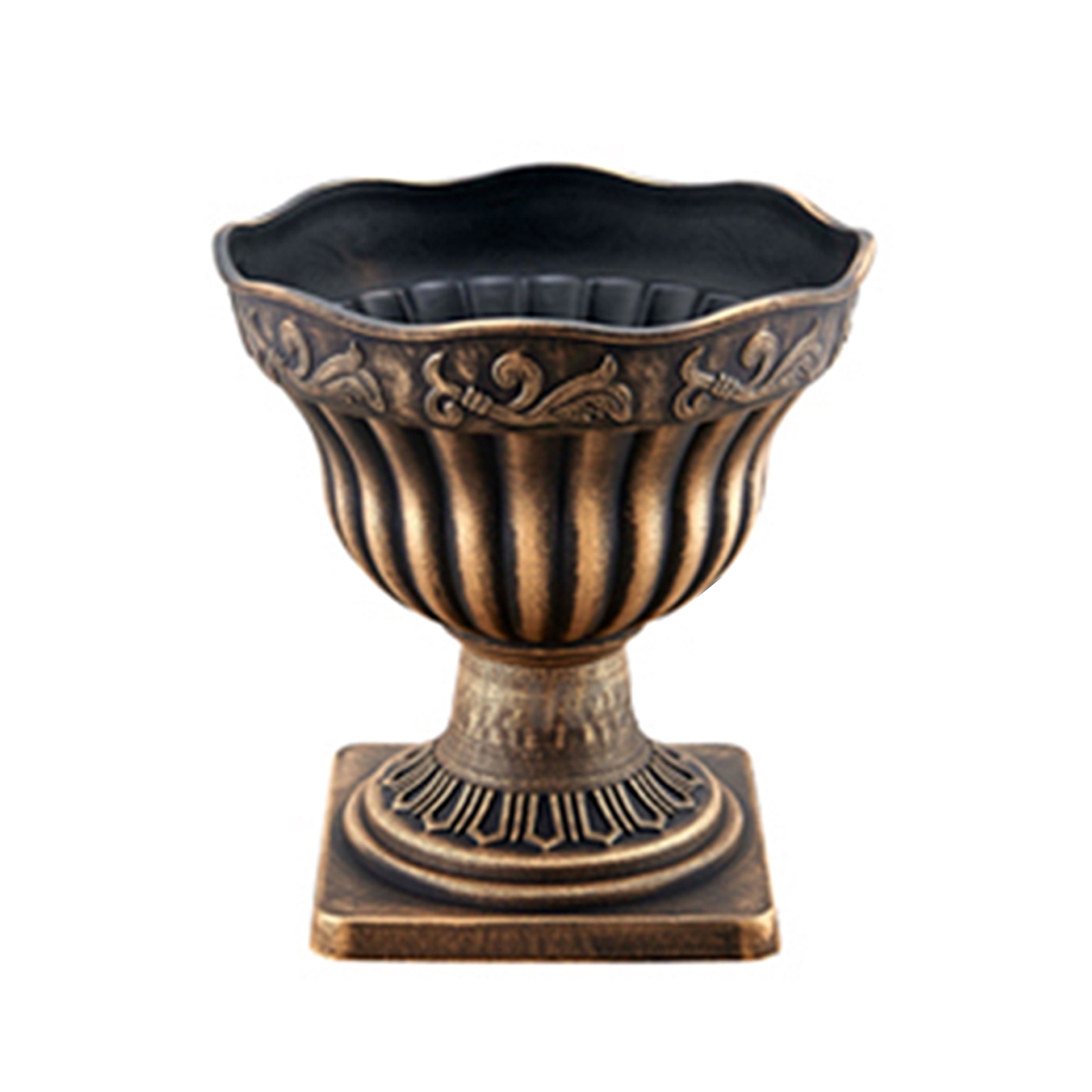In diesem antik anmutenden Blumenkübel in Metalloptik kommen Ihre Blumen besonders zur Geltung. Gefertigt aus witterungsbeständigem Kunststoff werden Sie lange Ihre Freude daran haben. Bei Nichtgebrauch kann die Schale vom Sockel gelöst und platzsparend verstaut werden.
