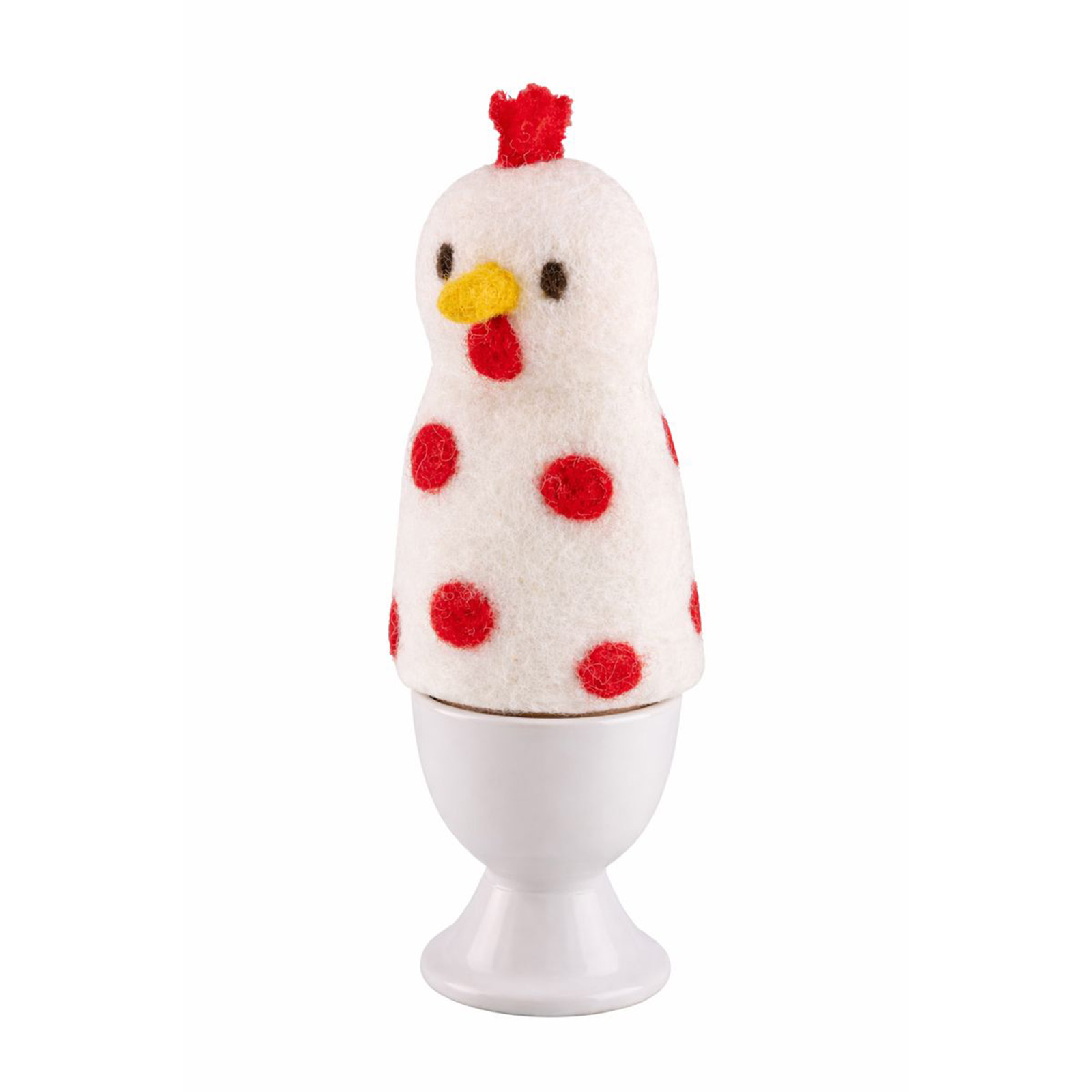 Handgefertigter und fair gehandelter Eierwärmer aus Schafwolle. Hitzebeständig bis 100°C und waschbar. Höhe 14,5 cm
