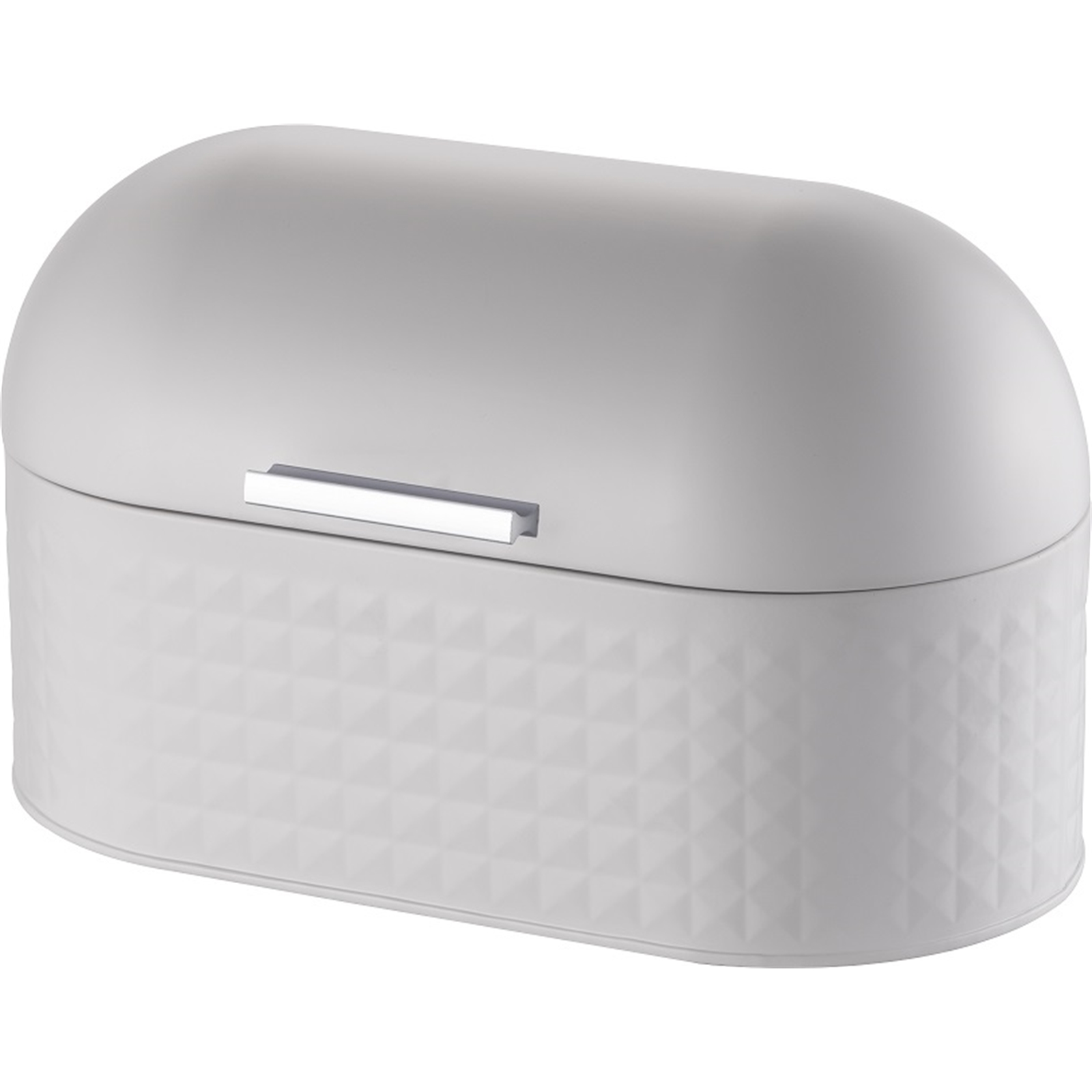 Moderner Brotkasten aus pulverbeschichtetem Eisen. Darin bleiben Brot, Brötchen und andere Backwaren lange frisch. Der Klappdeckel hat einen Griff für ein einfaches öffnen und schließen.