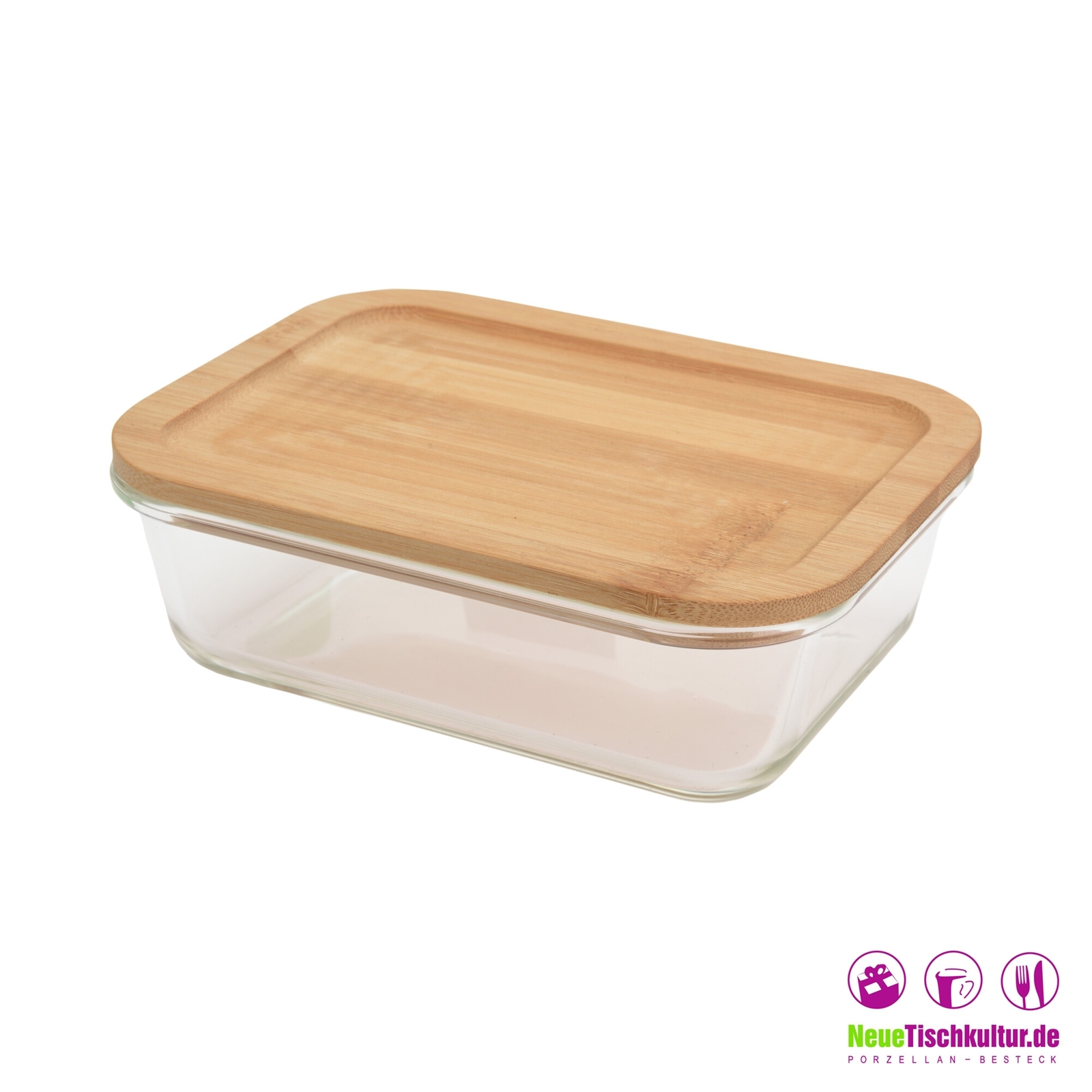 Diese Dose aus Glas mit Bambus-Deckel ist perfekt zum Aufbewahren, Frischhalten, Transportieren und Servieren von Lebensmitteln.