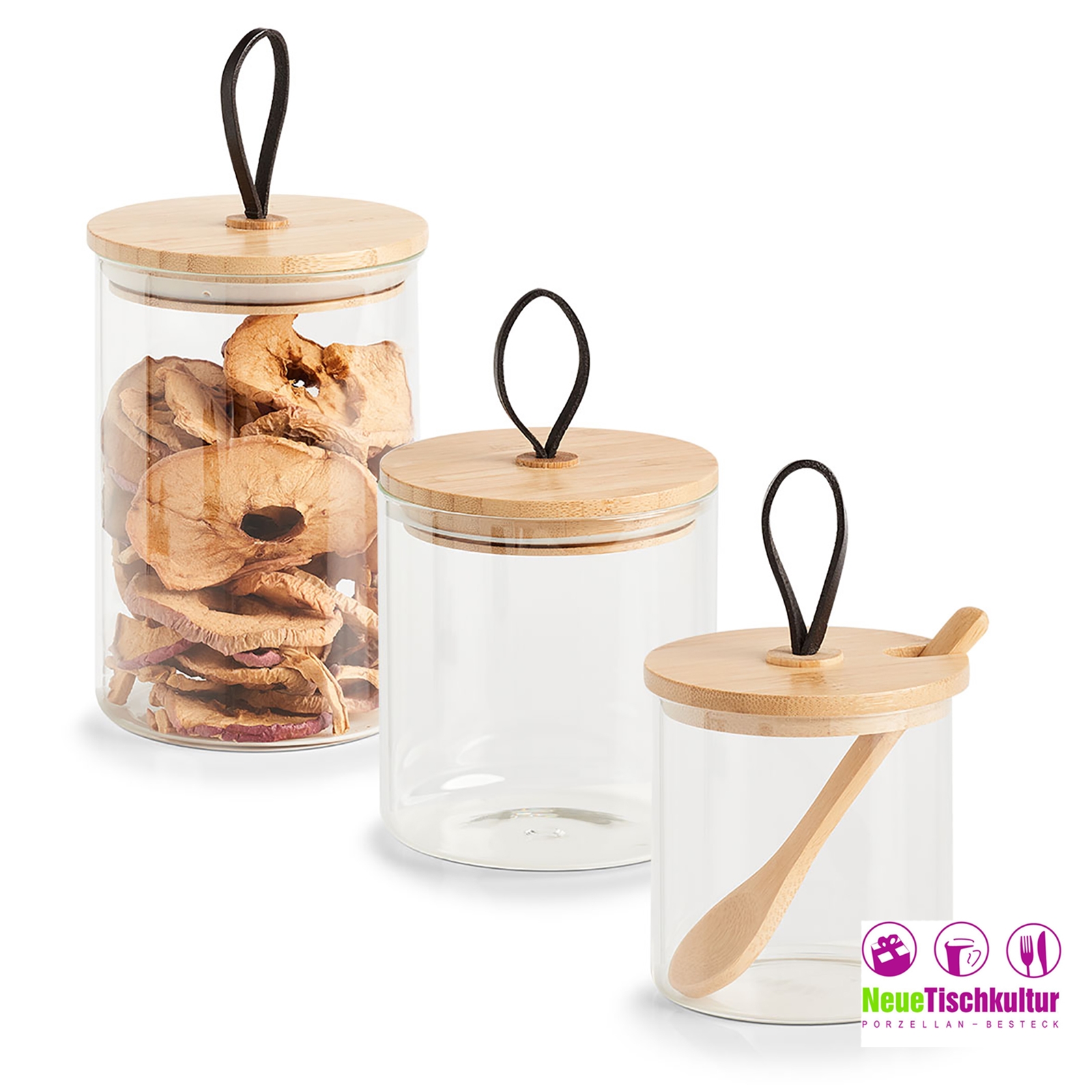 Die Vorratsglas-Serie mit Holzdeckel besticht außerdem noch durch die praktische Schlaufe, mit... mehr