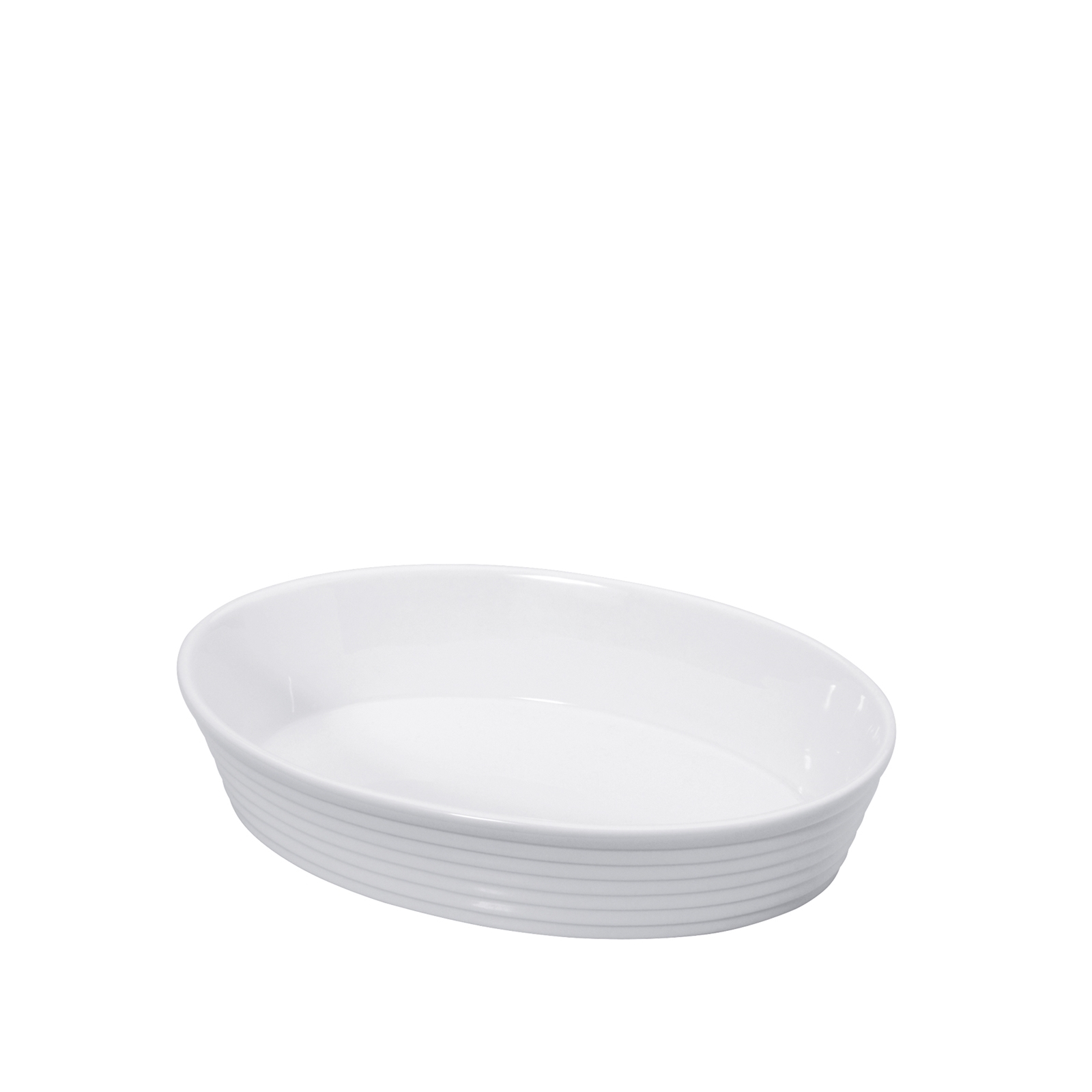 Das feuerfeste Hartporzellan ist hitzebeständig bis 280°C. Es ist erprobt in der Gastronomie und ist daher robust und stoßfest. Die weiße Schale eignet sich zum Zubereiten, Servieren, Warmhalten, Aufbewahren und Einfrieren. In der Audlaufform gelingen Fleisch, Fisch und frisches Gemüse ebenso wie der klassische Kartoffel-Gratin. Sie können Ihre Köstlichkeit direkt in den Behältern servieren - das elegante Design und das schlichte Weiß passen auf jeden Tisch. Die Ofenform gibt es in verschiedenen Größen: Länge 20 cm, 26 cm, 30 cm, 35 cm