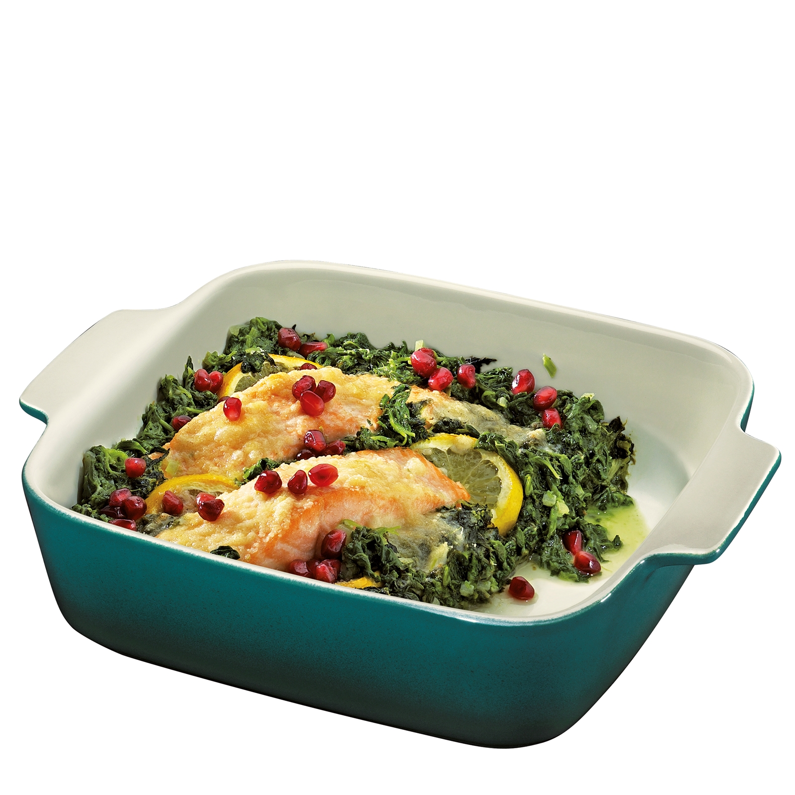 Moderne Ofenform aus Keramik - 4 in 1: Garen, Servieren, Aufwärmen, Aufbewahren.