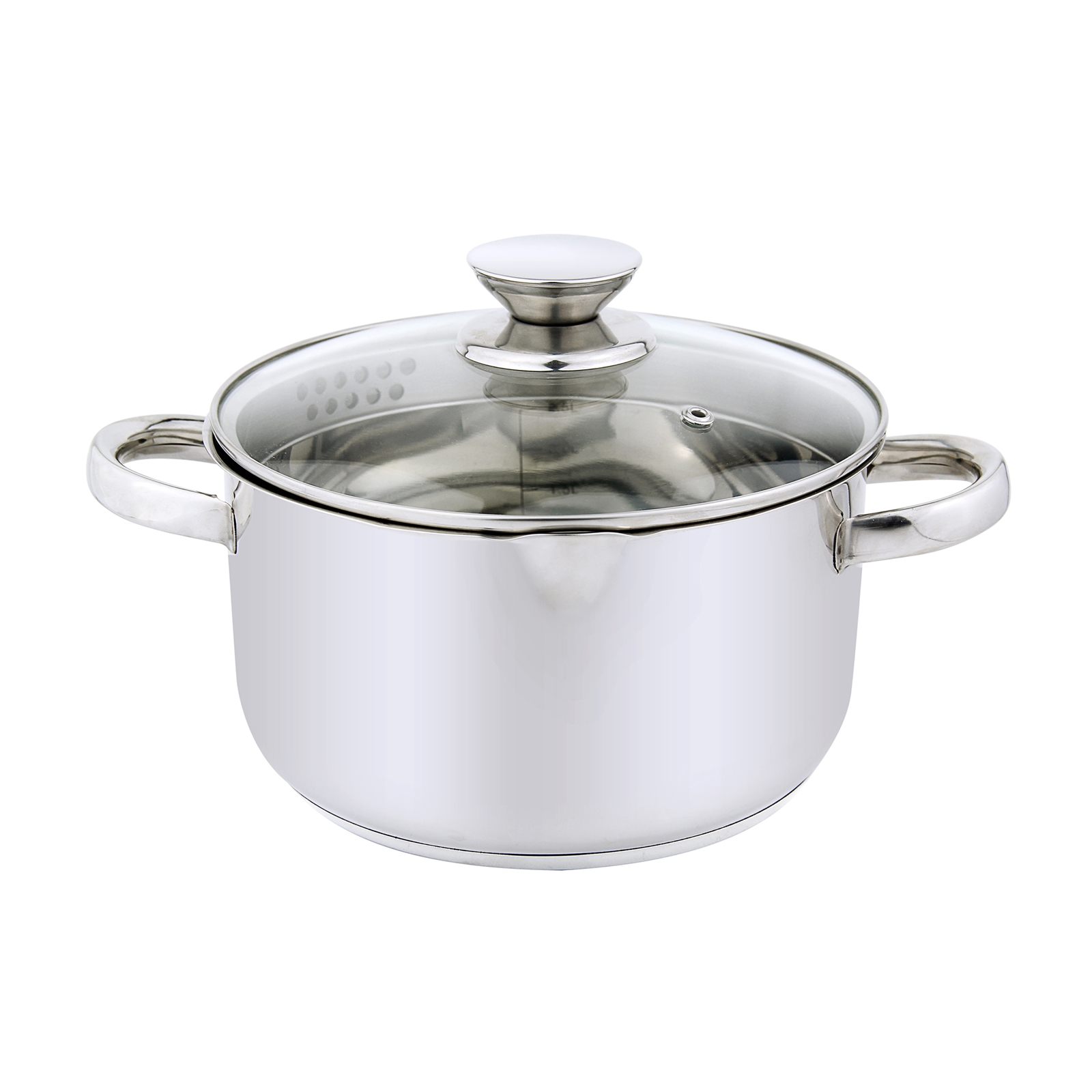 Dieser moderne Kochtopf aus Edelstahl mit Glasdeckel ist das Must-have in jeder Küche. Ideal für das Zubereiten von gesunden und fettarmen Speisen auf allen Herdarten, auch Induktion, geeignet. Maße 2 Liter Ø 18 cm, 2,5 Liter Ø 20 cm, 5 Liter Ø 24 cm, 8 Liter Ø 28 cm