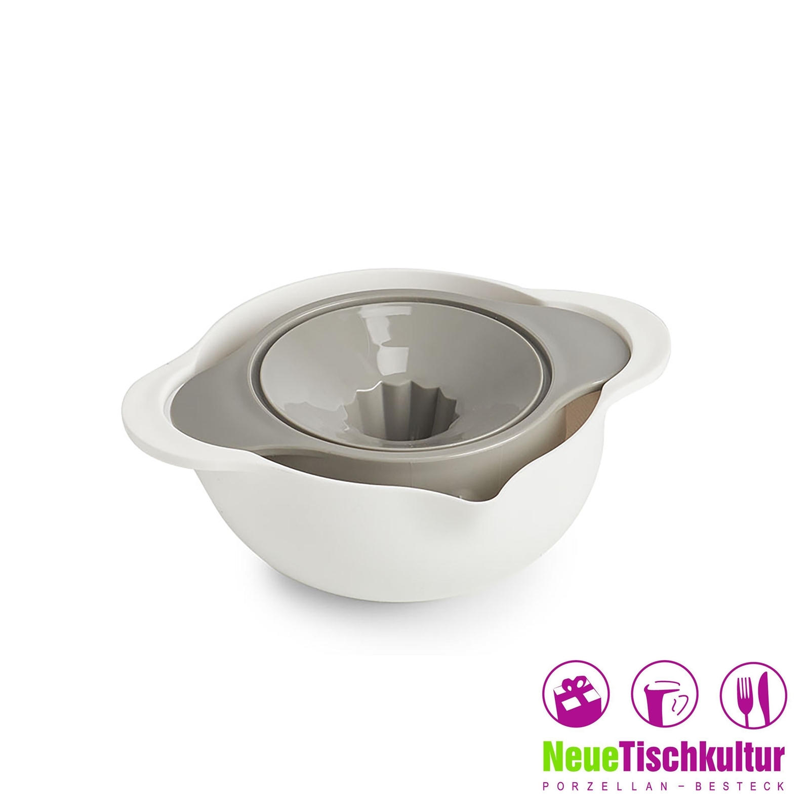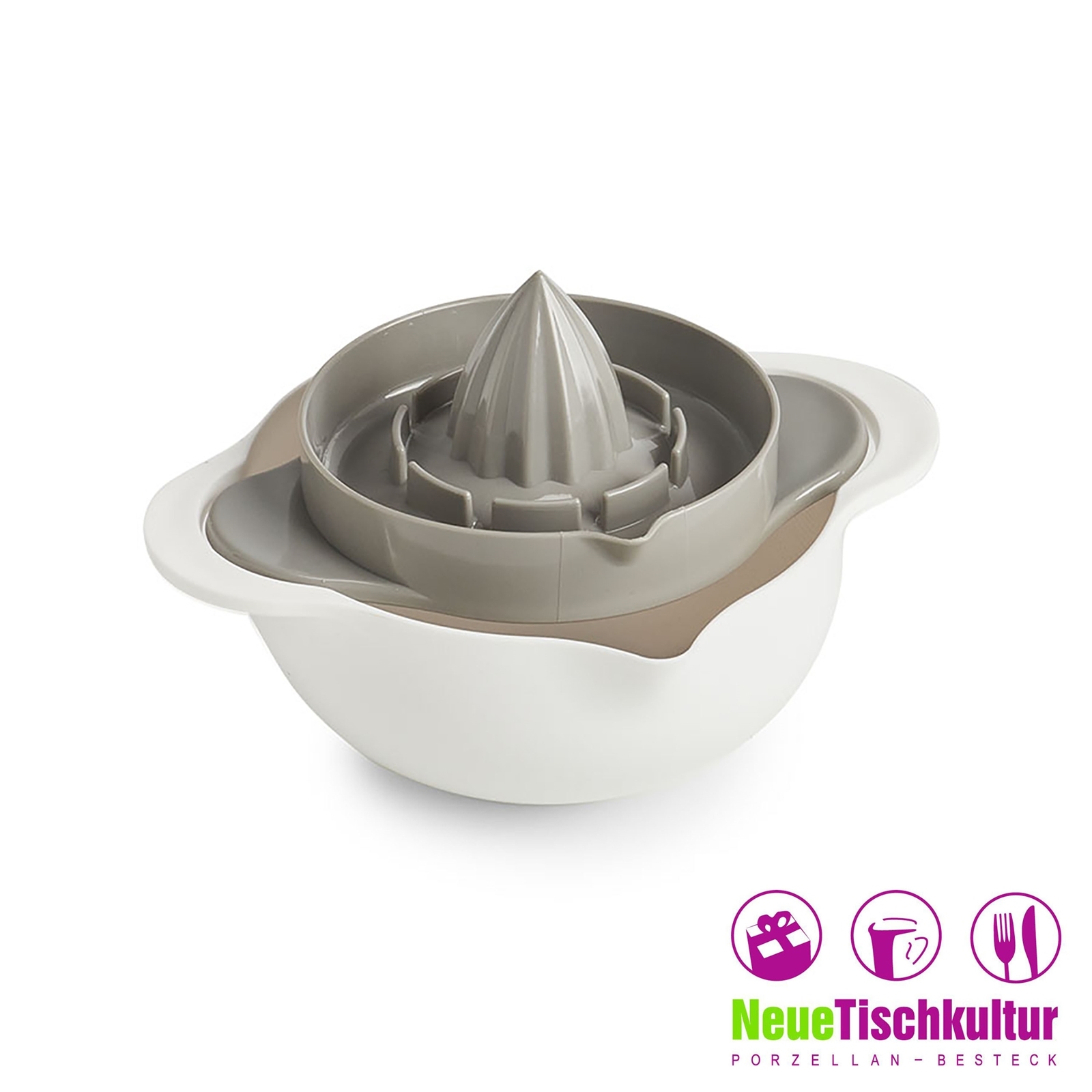 | Lieferumfang: | 1 Schüssel, 2 Siebe, 1 Zitronenpresse mit Ausgießer |