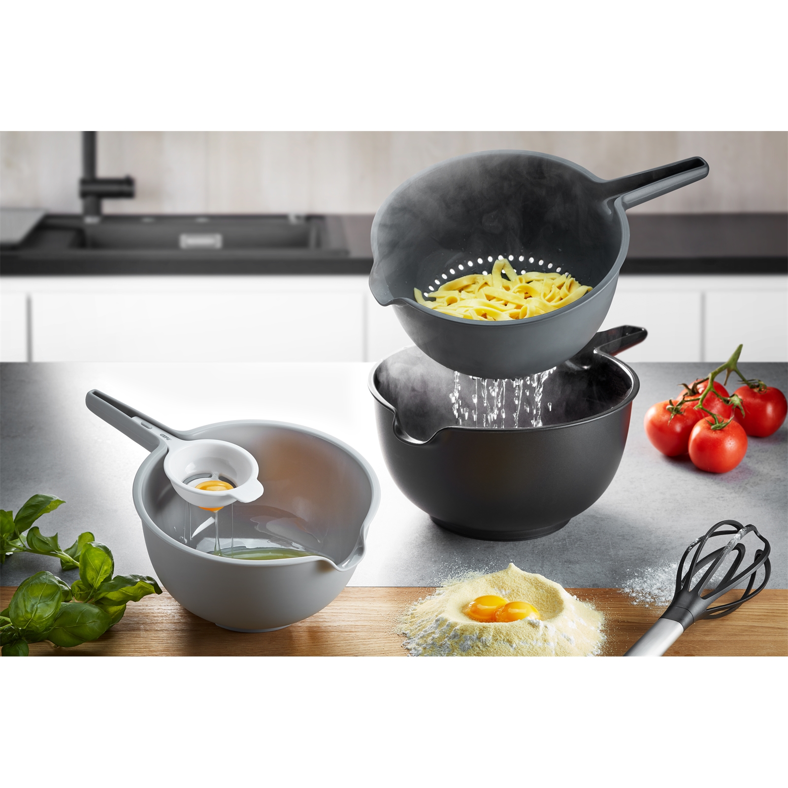 | Besonderheiten: | Rührschüssel Eitrenner Seiher |