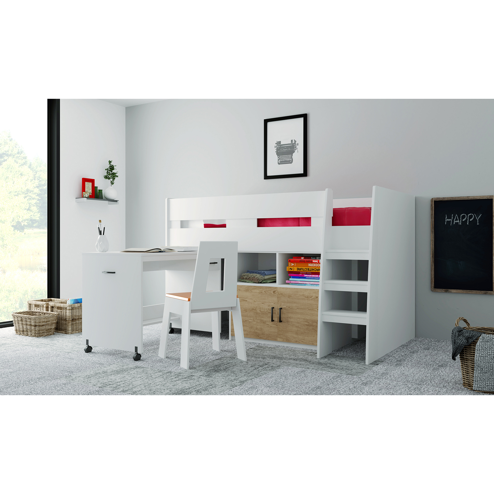 Produktinformationen "Hochbett Luisa Sonoma / Weiss MDF"
