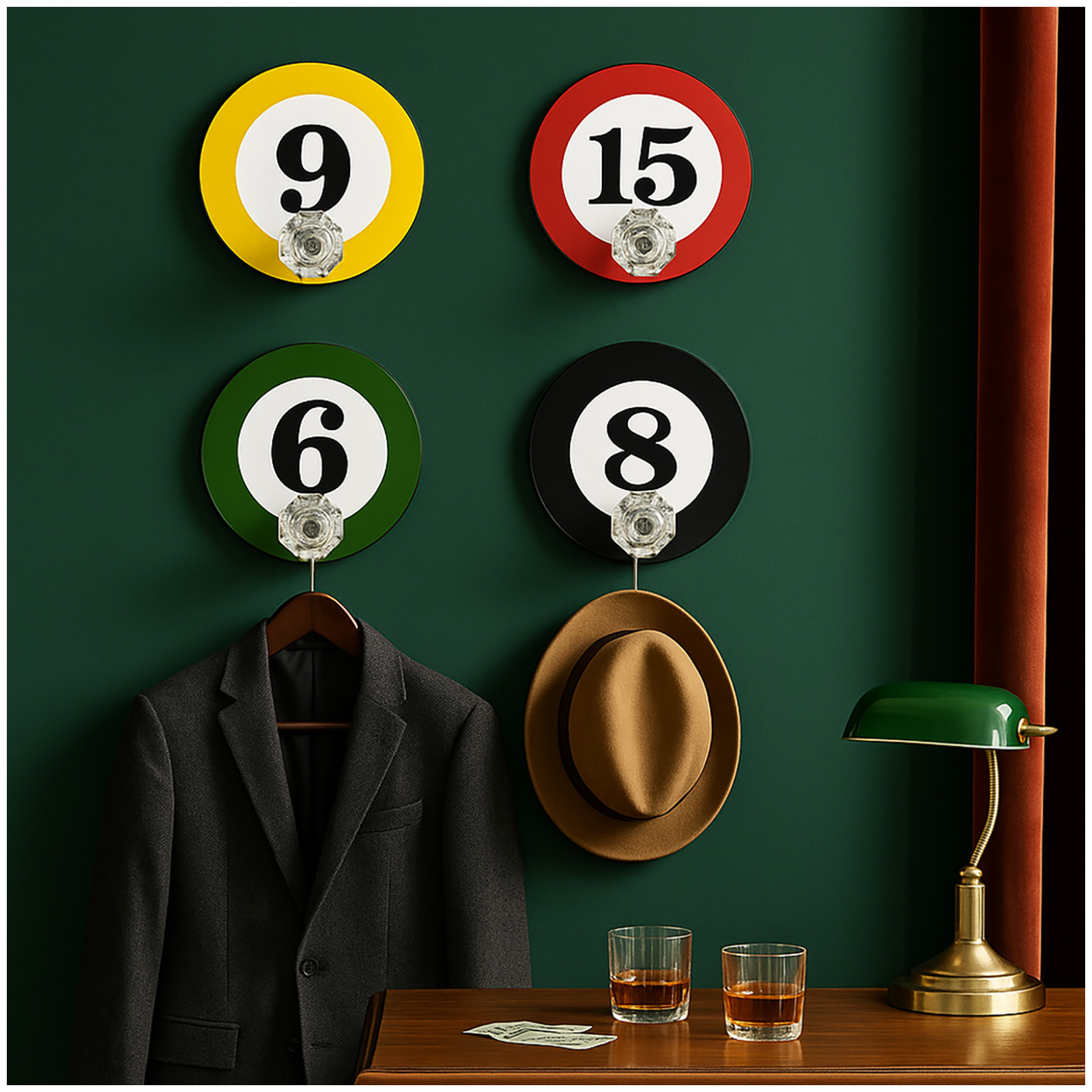 4x Wandhaken im Billardkugel Design