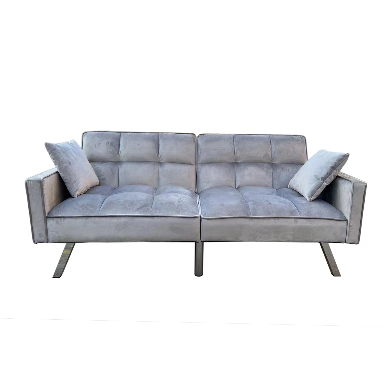 Das Sofa Brigga vereint Design und Funktionalität. Ob klassisch in Grau und Beige oder farbenfroh in Gelb oder Blau, das Sofa in zeitlosem Design fügt sich in nahezu jedes Wohnambiente harmonisch ein. Der Bezug mit samtiger Oberfläche setzt mit gesteppter Sitzfläche und Rückenlehne besondere Akzente. Metallbeine sorgen für einen sicheren Stand. Zudem verwandeln Sie dieses Polstermöbel mit nur wenigen Handgriffen in ein Gästebett. Die bequeme Polsterung bietet einen hohen Sitz- und Liegekomfort. Maße 189 x 80 x 88 cm, belastbar bis 200 kg, Sitzhöhe 43 cm, Sitztiefe 52 cm, Liegefläche 104 x 165 cm